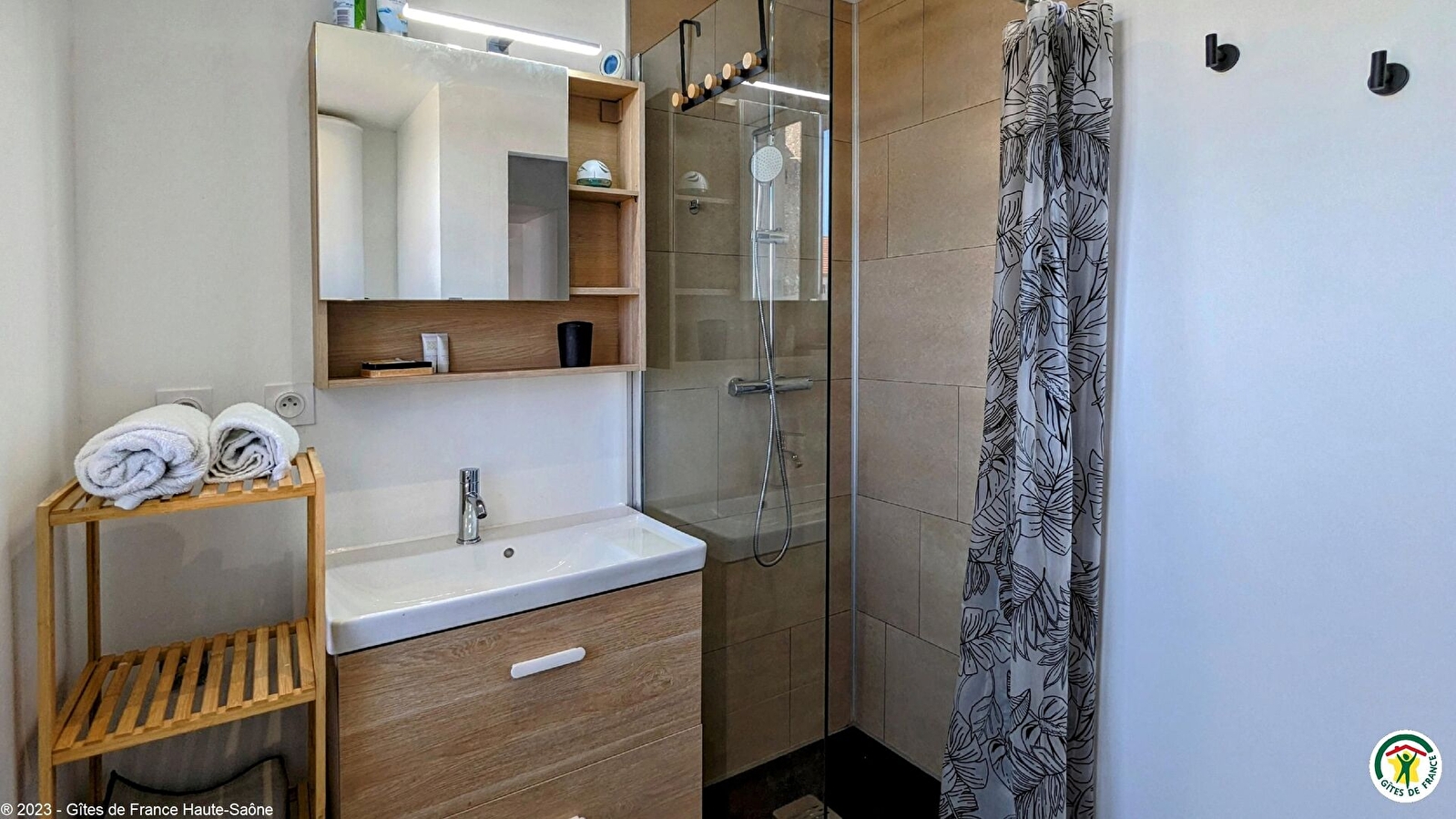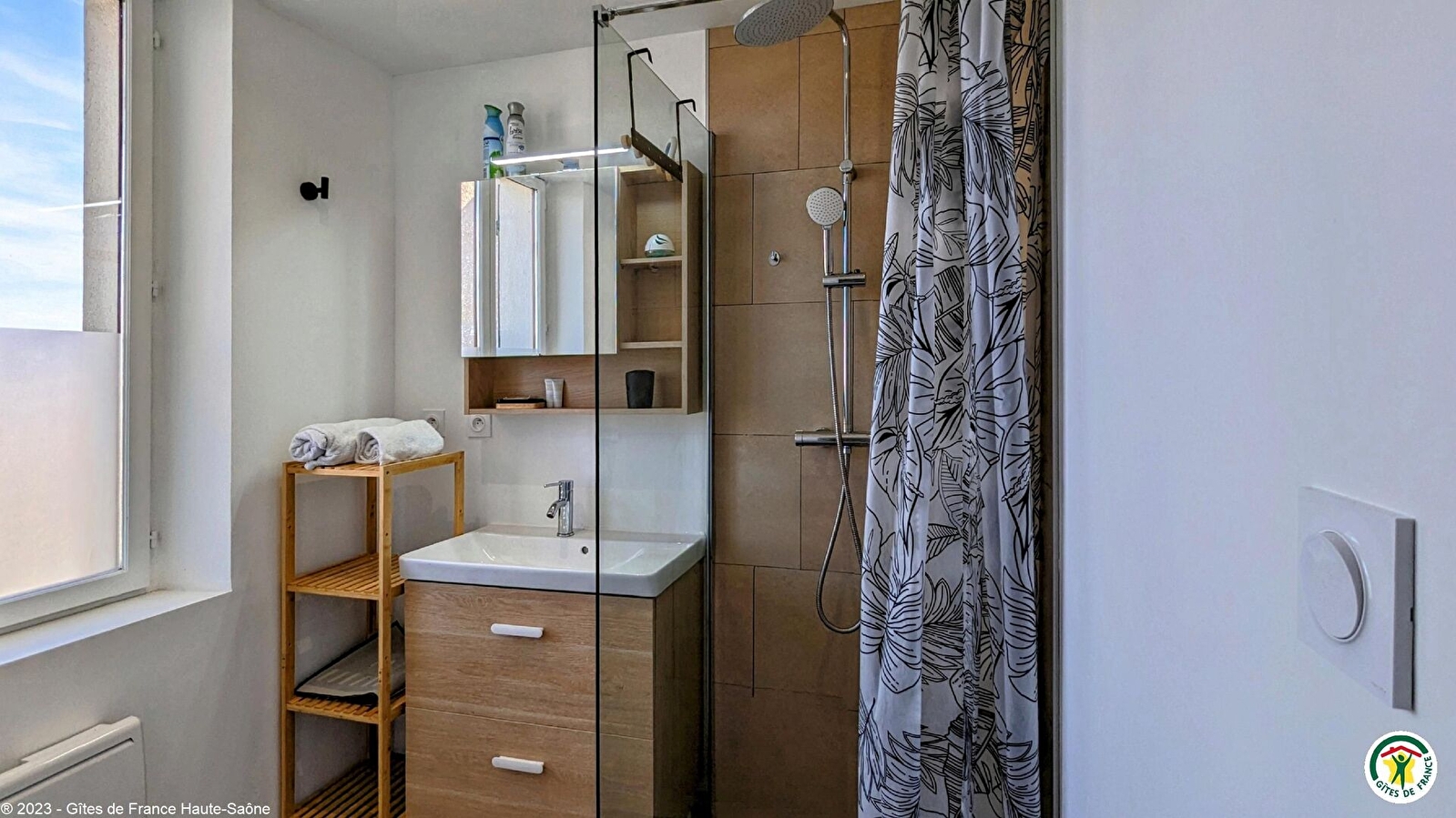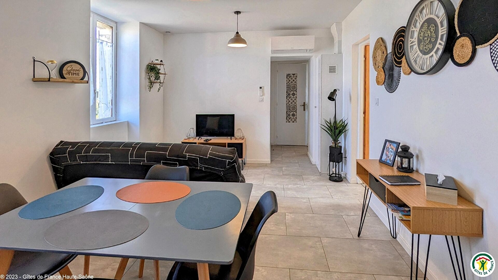 À Héricourt, dans un quartier calme, au 1er étage d'une maison comprenant un 2ème gîte, appartement entièrement rénové comprenant : cuisine ouverte sur séjour/salon, 1 clic-clac (140 cm), TV, Wifi, 1 chambre avec 1 lit de 140 cm et 1 chambre comprenant 1 lit de 160 cm et 1 dressing. Une salle d'eau avec douche et WC. Climatisation réversible. Jardin entièrement clos avec salon de jardin, barbecue. Parking aisé dans la rue. Un autre gîte est situé au rez-de-chaussée avec entrée et jardin indépendant (de l'autre côté de la maison) n° 70G4993 pour 6 pers.