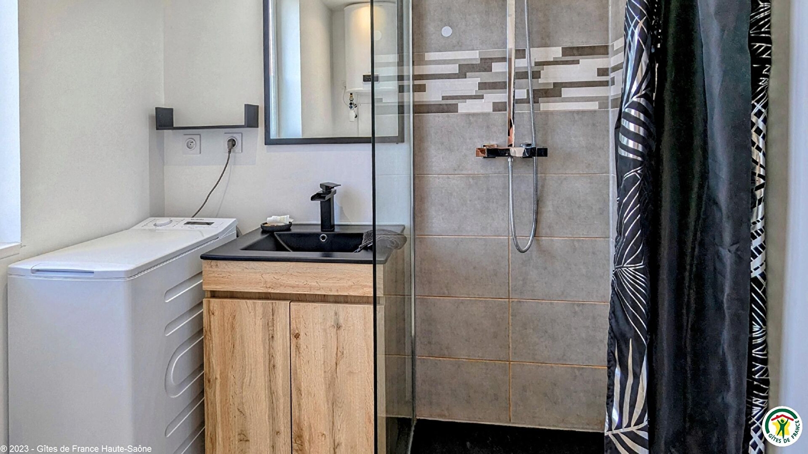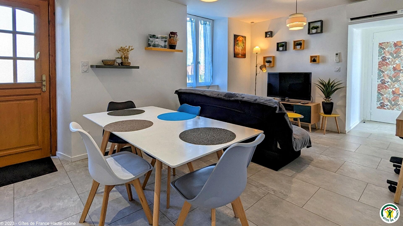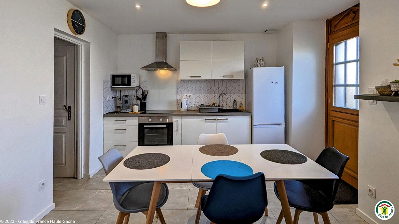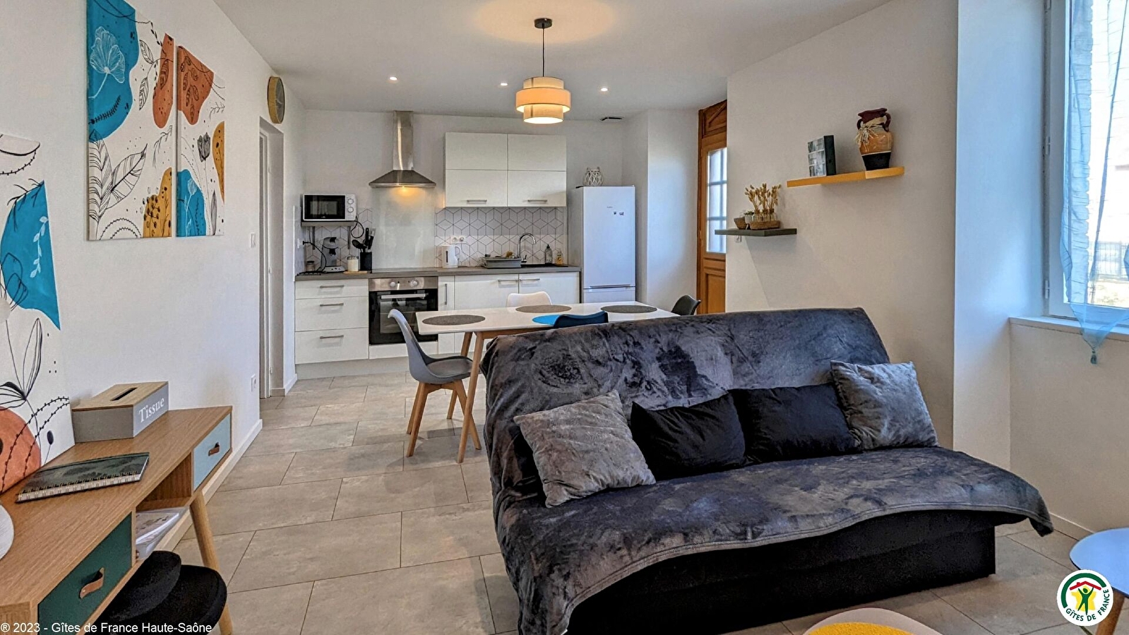 A Héricourt, dans un quartier calme, au rez-de-chaussée d'une maison comprenant un 2ème gîte, appartement entièrement rénové comprenant : cuisine ouverte sur séjour/salon, 1 clic-clac (140 cm), TV, Wifi, 1 chambre avec 1 lit de 140 cm et 1 chambre comprenant 1 lit de 160 cm et 1 dressing. 1 salle d'eau avec douche et WC. Climatisation réversible. Jardin entièrement clos avec salon de jardin, barbecue et balançoire. Parking privatif dans la cour. Possibilité de mettre des vélos à l'abri dans le garage sur demande. Un autre gîte est situé à l'étage avec entrée et jardin indépendant (de l'autre côté de la maison) n° 70G4995 pour 6 pers.