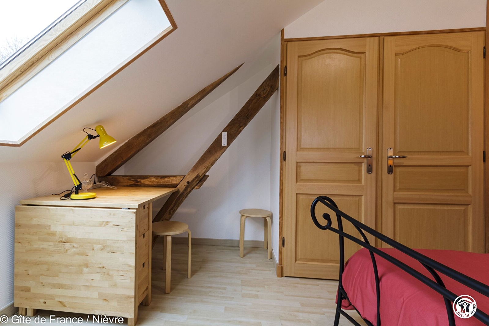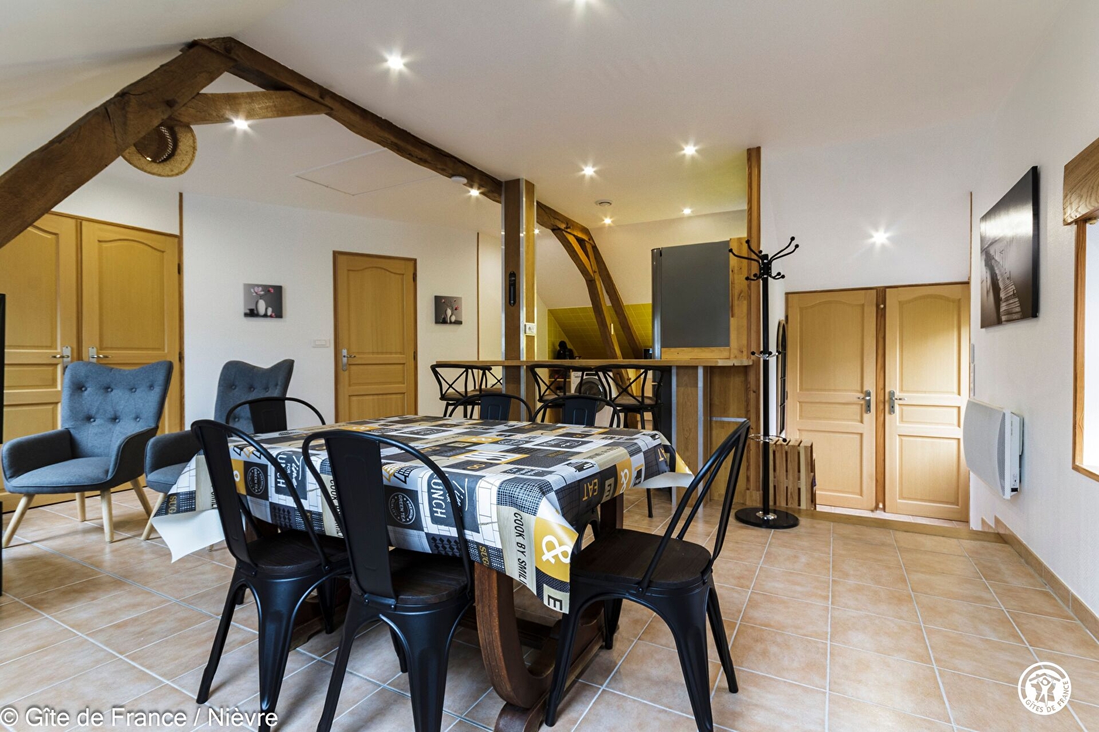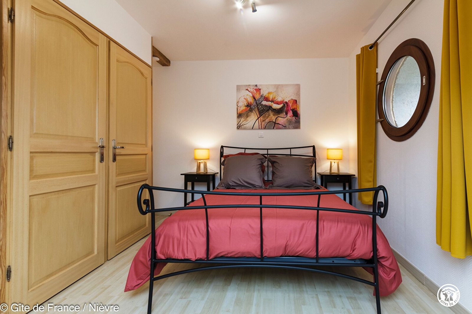 Dans un hameau au calme, dans le parc naturel régional du Morvan, le gîte a été entièrement aménagé dans un ancien bâtiment agricole. Les propriétaires habitent en face. Un jardinet avec terrasse et store banne, salon de jardin et barbecue/plancha au gaz, 2 voitures peuvent être garées. Le gîte est cocooning pour 4 personnes : une cuisine aménagée et équipée ouverte sur la pièce à vivre comprenant l'espace repas et le coin salon avec télé connectée, lecteur dvd blu-ray, micro-chaîne, internet. 2 chambres ayant chacune 1 lit 140x190 bénéficiant d'une belle vue sur le Morvan, une chambre est équipée d'un bureau pour permettre le télétravail. Une salle d'eau avec douche et un wc indépendant. Le gîte est équipé d'une climatisation réversible.