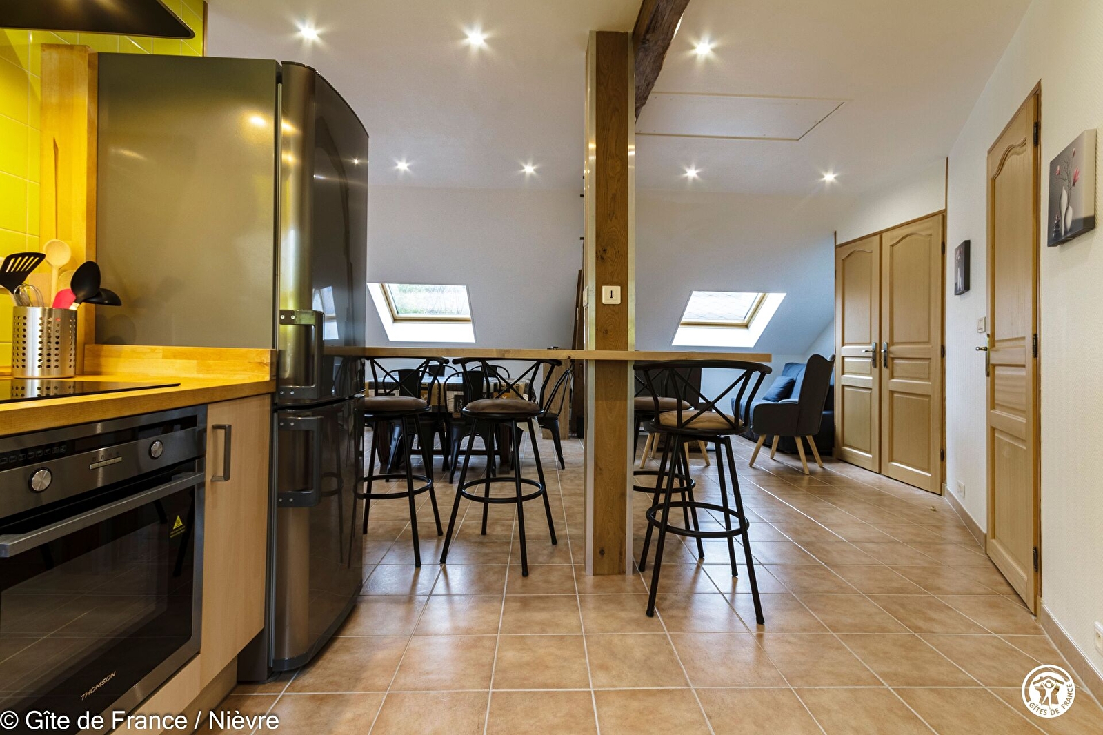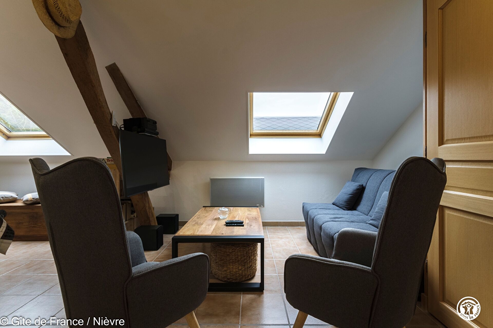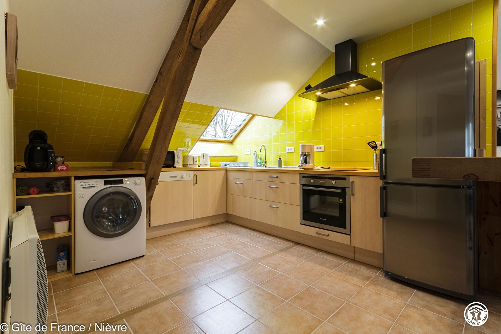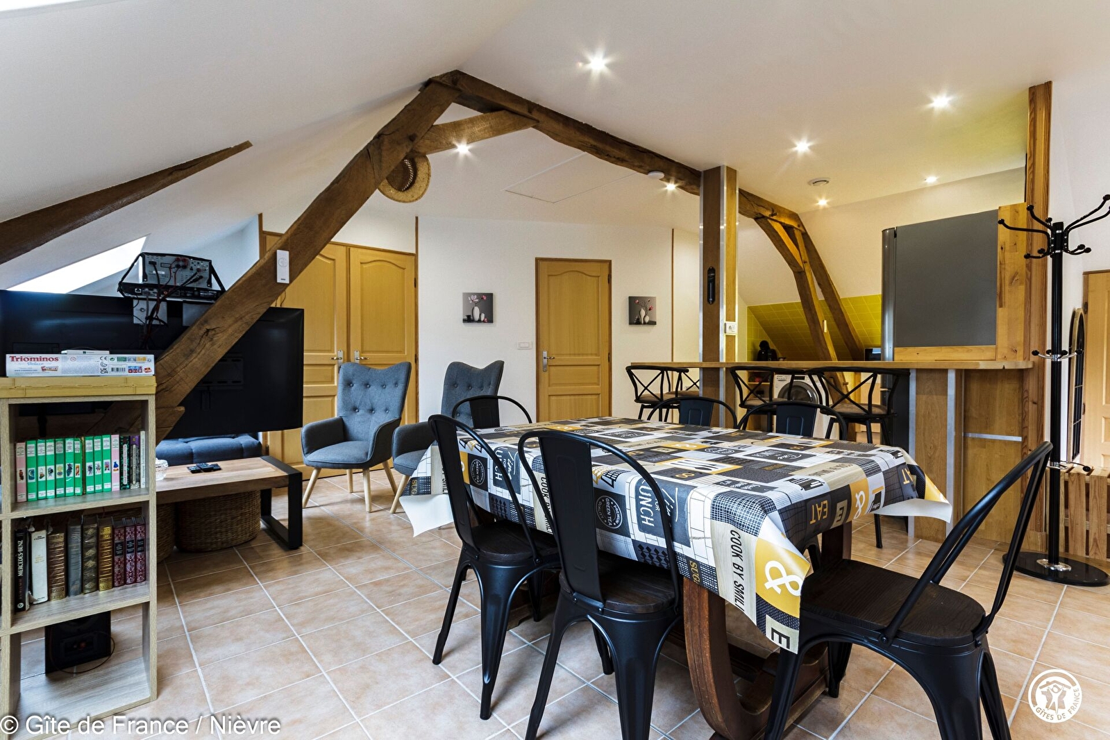 Dans un hameau au calme, dans le parc naturel régional du Morvan, le gîte a été entièrement aménagé dans un ancien bâtiment agricole. Les propriétaires habitent en face. Un jardinet avec terrasse et store banne, salon de jardin et barbecue/plancha au gaz, 2 voitures peuvent être garées. Le gîte est cocooning pour 4 personnes : une cuisine aménagée et équipée ouverte sur la pièce à vivre comprenant l'espace repas et le coin salon avec télé connectée, lecteur dvd blu-ray, micro-chaîne, internet. 2 chambres ayant chacune 1 lit 140x190 bénéficiant d'une belle vue sur le Morvan, une chambre est équipée d'un bureau pour permettre le télétravail. Une salle d'eau avec douche et un wc indépendant. Le gîte est équipé d'une climatisation réversible.
