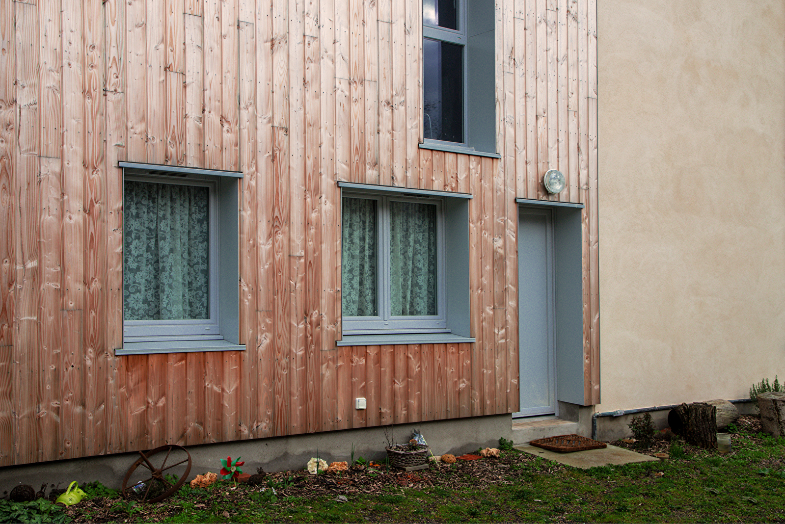 Espace détente à l’extérieur avec table et jardin. C’est l’endroit parfait pour un séjour tranquille.