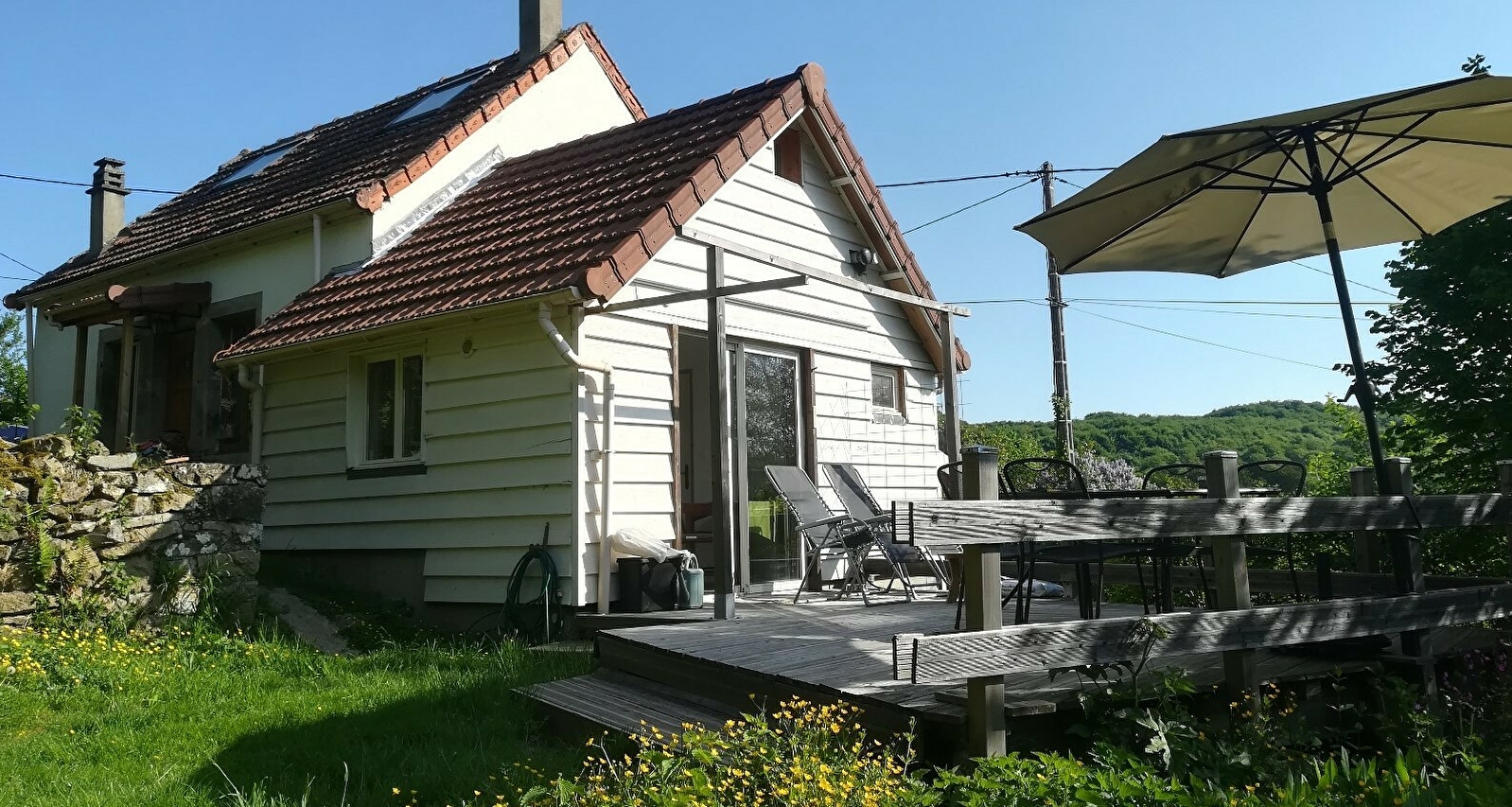 La Capucine est un gîte rural de très bon confort, indépendant et situé dans un hameau charmant et calme en bordure d'une forêt. Idéal pour se ressourcer, avec une belle vue et un grand jardin avec 2 terrasses! Une terrasse attenante à la cuisine (partiellement couverte) ; l'autre, dans le jardin prolongeant l’espace de vie avec ce grand "salon" unique en plein air, avec un grand canapé couvert et une grande table à manger. Il y a un terrain de pétanque dans le jardin et 3 places de stationnement sur place.