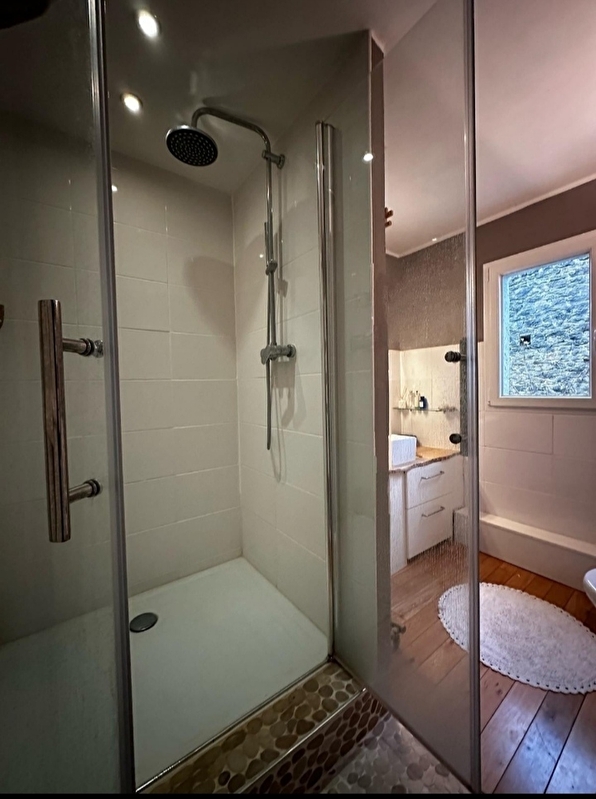 Vous y trouverez également une salle de bain avec une grande douche, toilette et bidet, idéale pour répondre aux besoins de chacun.
