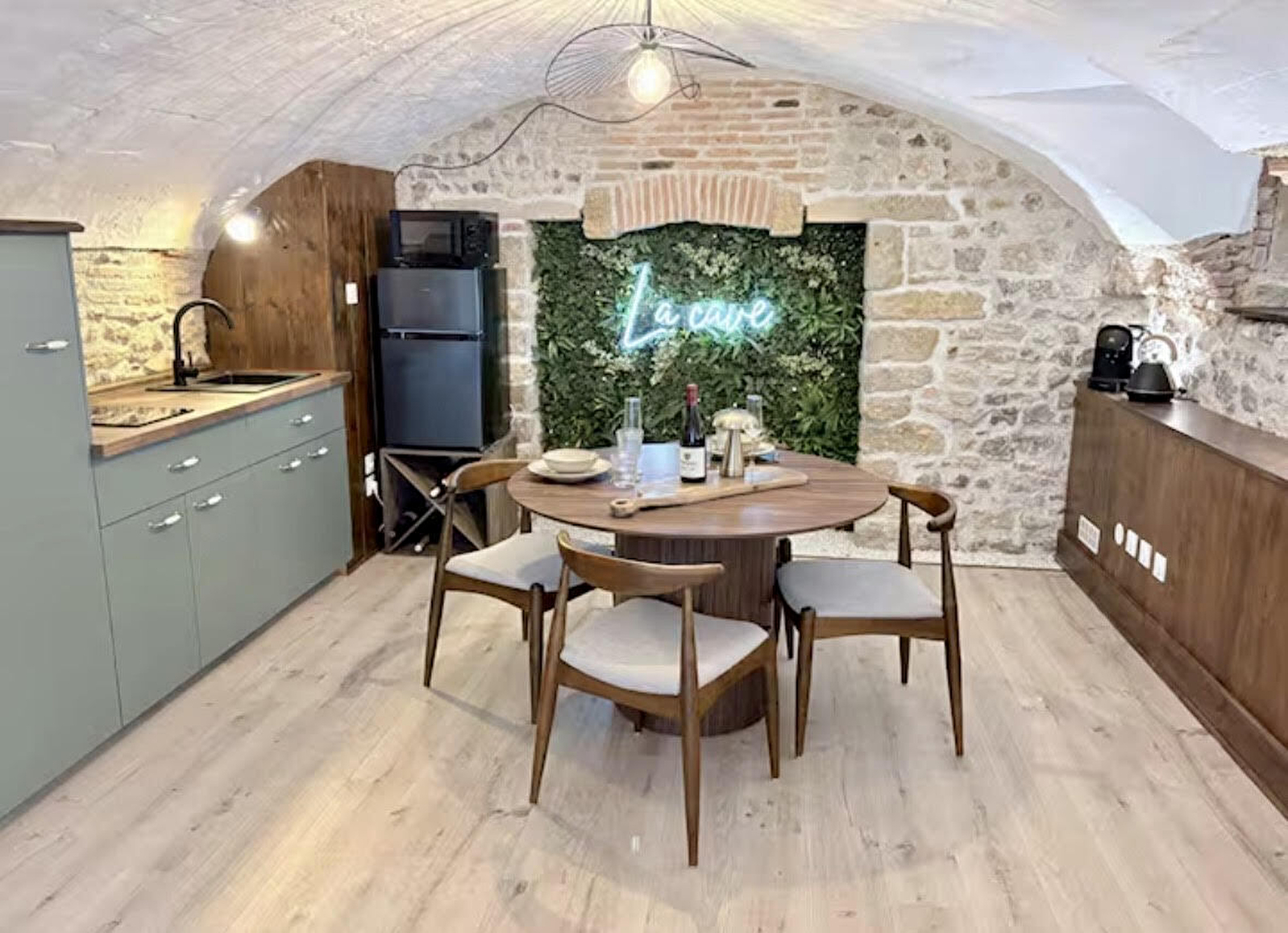 Aménagé dans une cave en demi sous-sol, cet appartement plein de charme vous offre une expérience unique, entre intimité et ambiance chaleureuse. Un lieu original pensé pour allier fonctionnalité et confort des voyageurs.