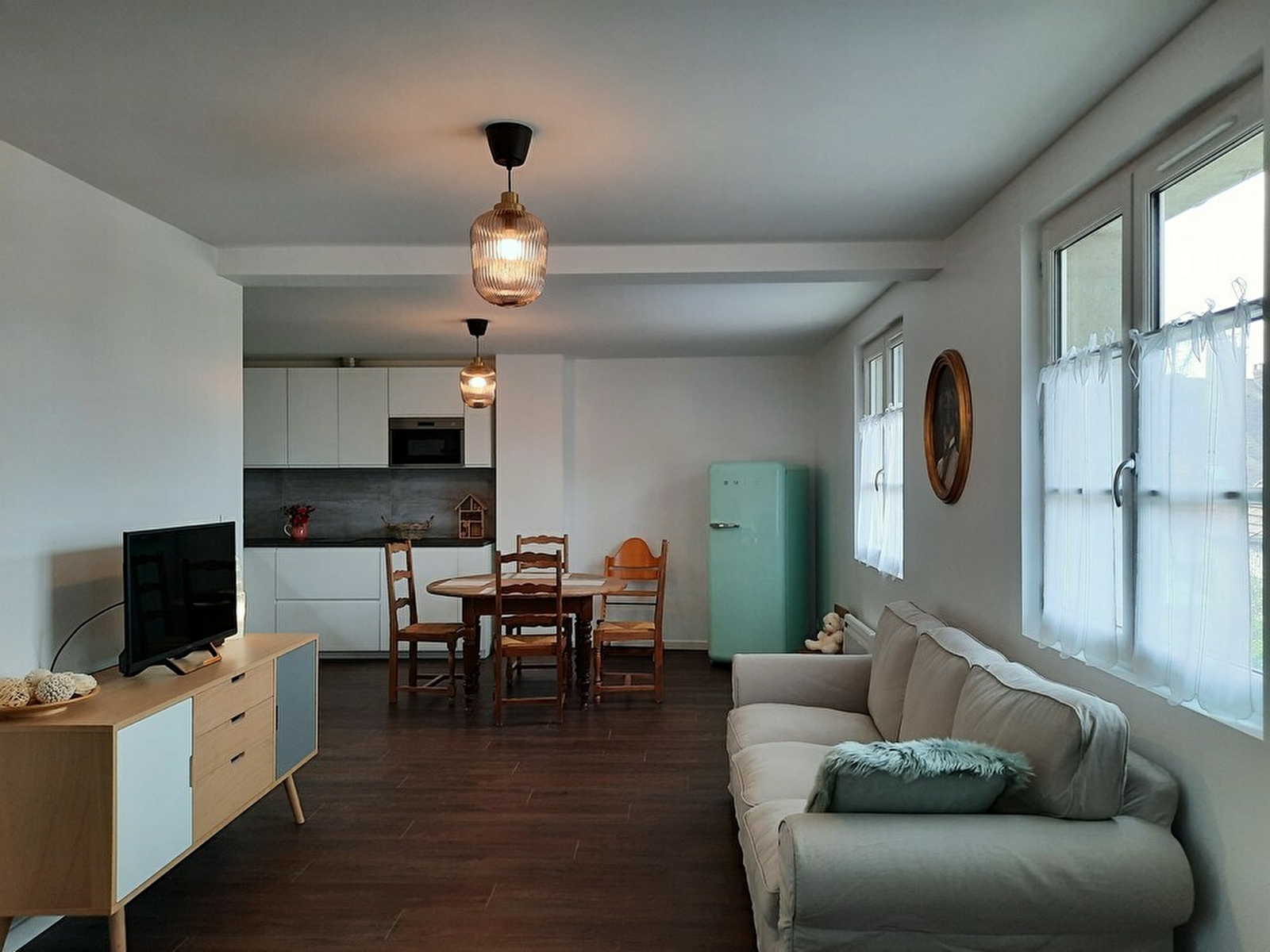 Dans l'un des plus beaux villages de France, au coeur de l'exceptionnel vignoble jurassien, venez découvrir cette maison abritant un joli gite très moderne, lumineux et décoré avec goût. L'accès se fait par un escalier extérieur menant à l'entrée indépendante. Belle pièce à vivre composée d'une cuisine entièrement équipée ,et d'un espace salon avec canapé et télévision écran plat .La chambre donne également sur le jardin .Elle est équipée d'un lit de 160 cm et d'un vaste placard mural. Salle d'eau avec douche et wc. A la belle saison, vous pourrez apprécier le petit jardin attenant non clos, équipé de salon de jardin et barbecue propice à la détente. N'attendez plus pour réserver ce petit coin de paradis !