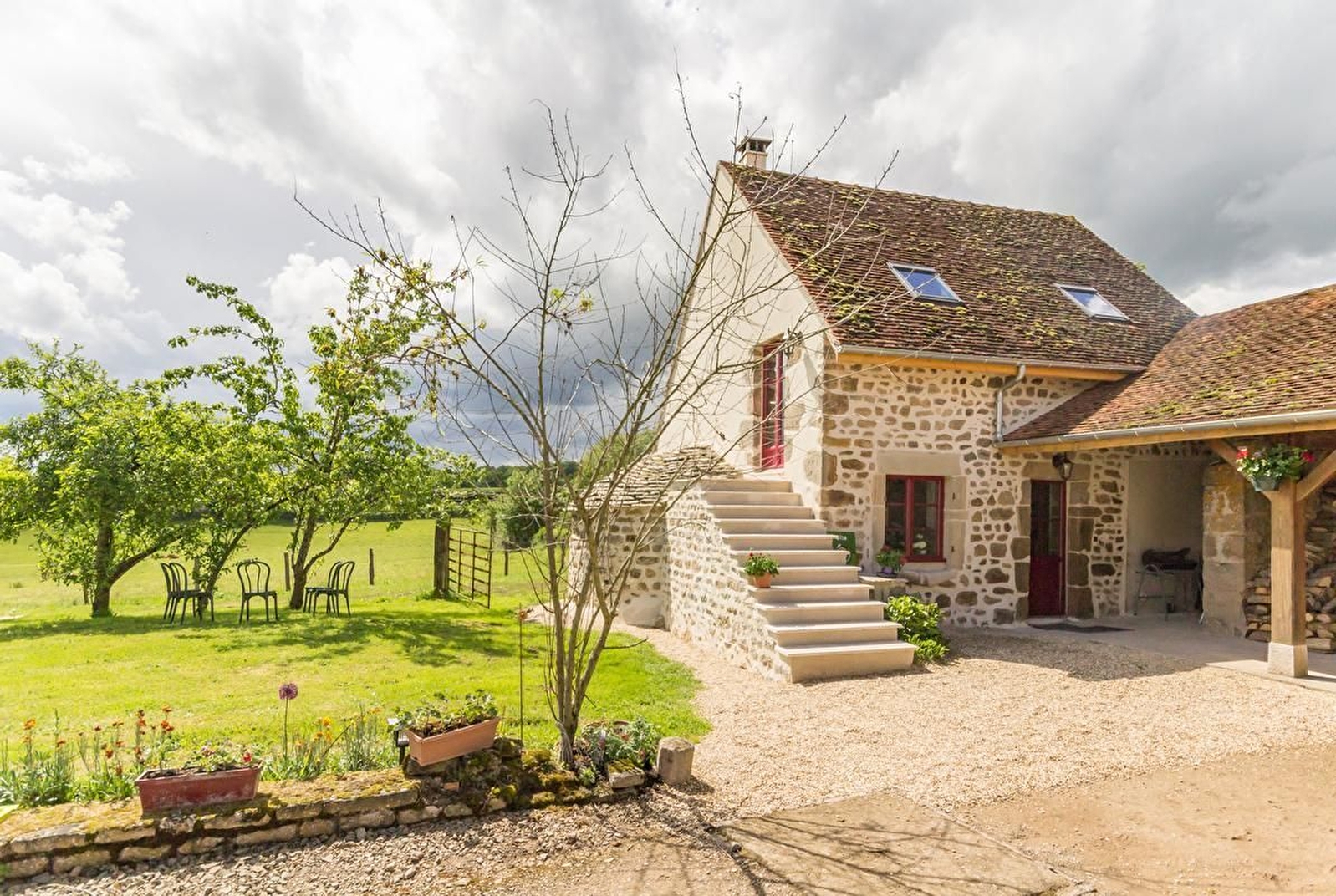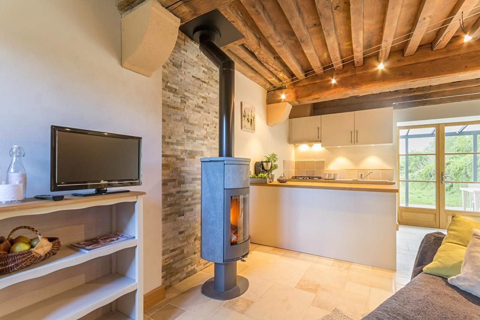Au coeur de l'Auxois-Morvan, ancienne chambre à four en pierres entièrement rénovée pour des vacances au vert avec tout le confort moderne. Rez-de-chaussée en dalles de pierre : séjour avec cuisine équipée et salon avec poêle à bois et canapé convertible. WC. A l'étage : mezzanine avec 1 lit 80 x 190 (gigogne) communicante avec une chambre double (lit 140), une salle d'eau avec WC. Terrasse avec belle vue sur les paturages. Parking sous abri dans la cour commune des propriétaires, qui habitent sur place. Chauffage électrique selon consommation. Tout l'équipement pour bébé est disponible sur demande. Notions d'anglais et d'allemand. Les propriétaires disposent aussi d'un étang privé de 25 ares, accessible sans carte de pêche. Possibilité tir à l'arc sur la commune.