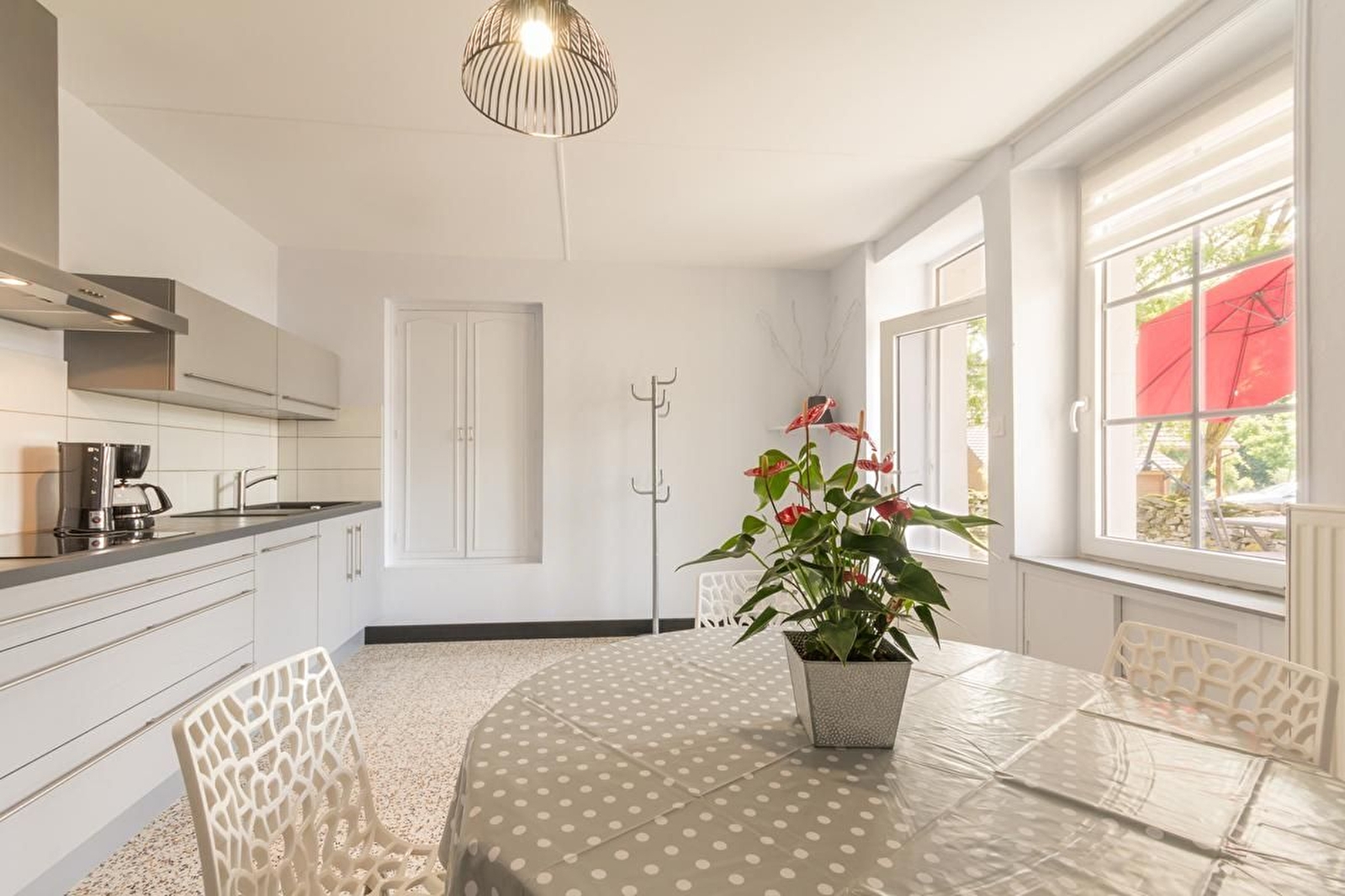 Au cœur du hameau de la Chassagne, maison indépendante rénovée et mitoyenne à une grange. Rez-de-chaussée : salle à manger avec cuisine intégrée. On accède par quelques marches au reste de la maison : salon TV, 2 belles chambres (2 lits 140 et 1 lit 90), espace détente supplémentaire avec un canapé convertible (BZ), salle d'eau avec grande douche, WC séparé et buanderie. Terrasse et petit jardin. Stationnement pour 2 voitures. Local vélos fermé à clé. Étage de la maison non utilisé. Draps inclus.