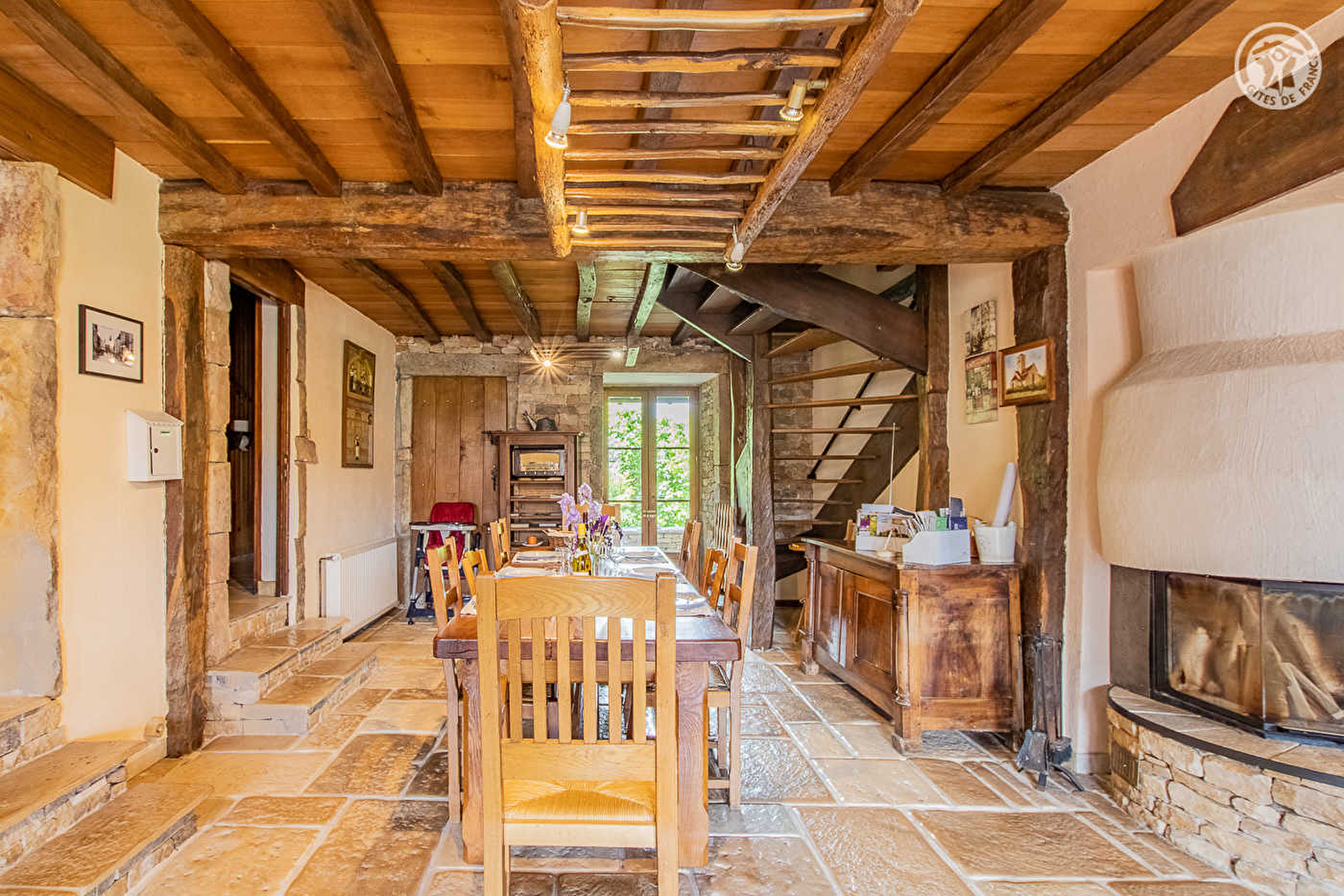 Patrick vous ouvre les portes d'une élégante fermette bourguignonne traditionnelle datant du XIXème siècle - bien "familial" intégralement restauré par ses soins dans les règles de l'art - nichée au sein d'un ravissant petit hameau chargé d'histoire (nombreux édifices classés sur place), jouxtant le cœur d'un pittoresque village typique du haut mâconnais, au très riche patrimoine, célèbre pour son église romane du XIème siècle (le "Phare de la Bourgogne du Sud" dominant en promontoire la vallée de la Saône ; sublime belvédère panoramique jusqu'aux Alpes & au Mont-Blanc depuis le site) et ses 3 lacs aménagés (pêche & baignade). Magnifique cadre paysager alentours, niché en lisière de champs de cultures à deux pas des tout premiers vignobles, au creux de la douce campagne tournugeoise vallonnée, blotti au pied des contreforts boisés du superbe massif Sud Bourgogne, sauvage & préservé (remarquable écosystème protégé en "Zone Natura 2000"), à parcourir lors d'apaisantes balades à pied ou VTT. Spacieux gîte de très bon confort. Vaste pièce de vie de 70m². Chaleureux cachet campagnard sublimé par une très belle réhabilitation patrimoniale, réalisée "à l'identique" dans le respect du bâti d'origine (sol en pierres de Bourgogne, poutres, murs en colombages avec briques & pans de bois, charpente…). Énormément de charme et de caractère. Large balcon abrité côté rue. Agréable intimiste jardin clos, engazonné, arboré & végétalisé, lové à l'abri des regards à l'arrière de la maison.