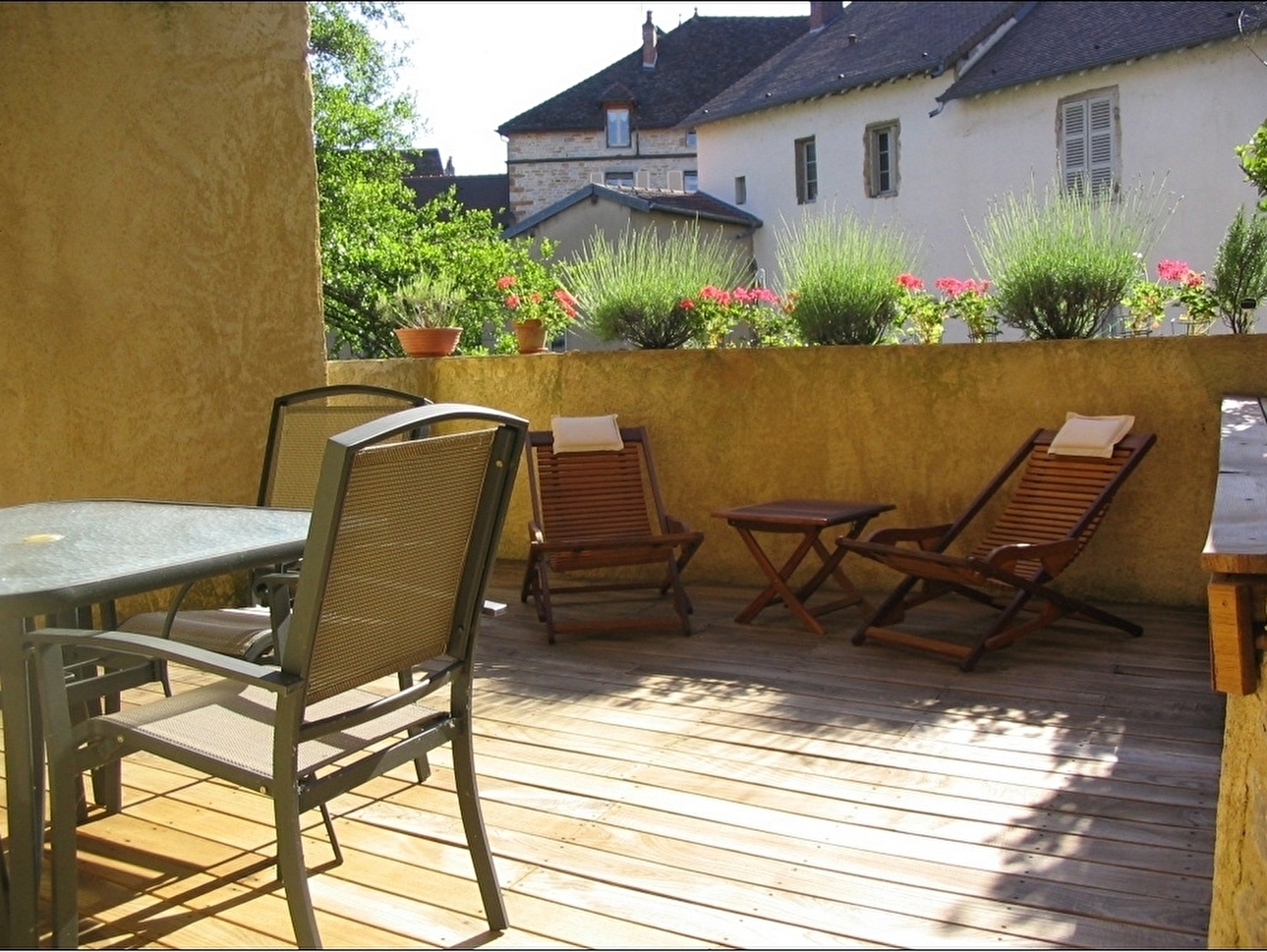 De la terrasse, profitez d’une des plus belles vues sur le clocher comtois de l’église St Just.