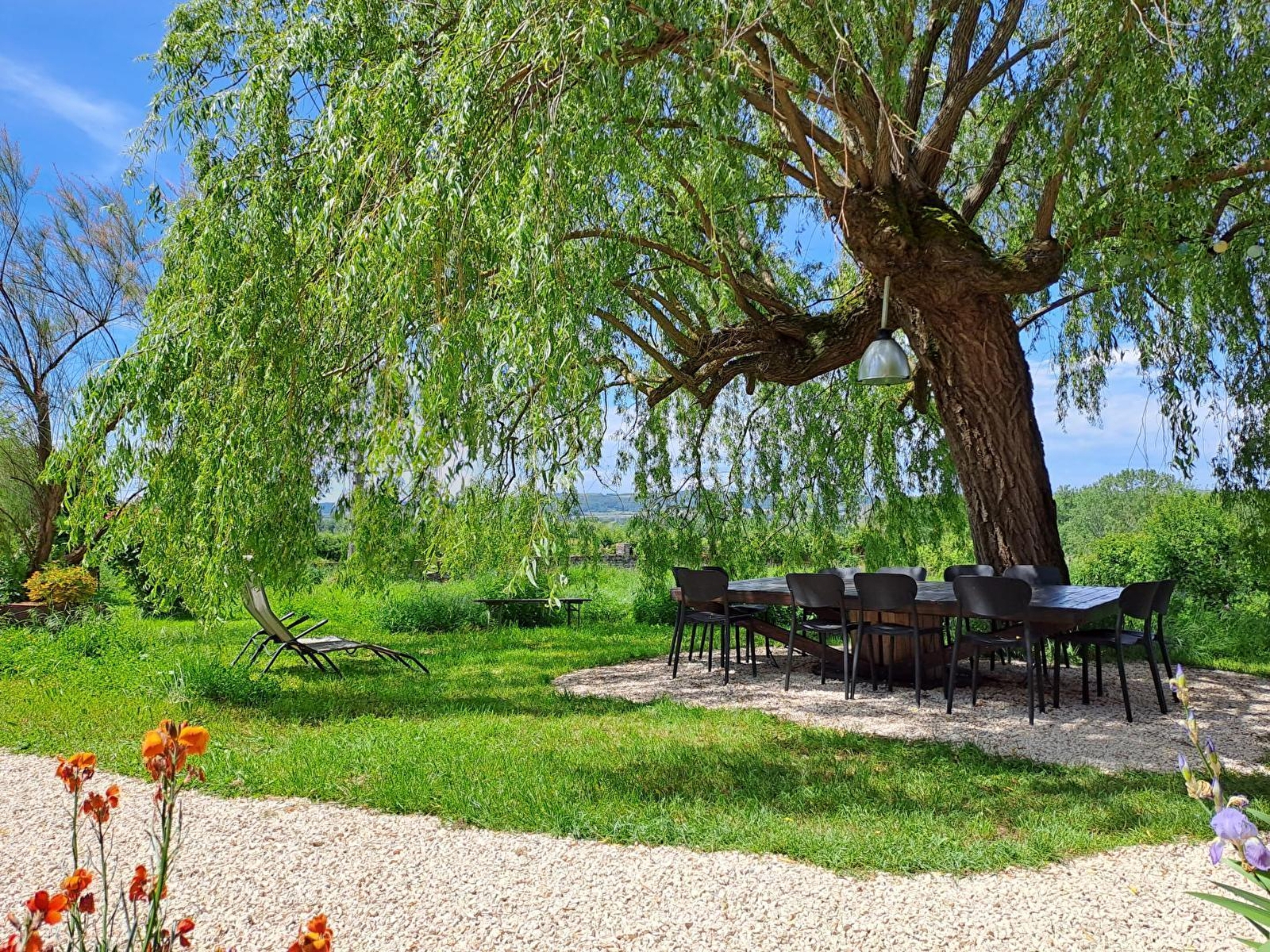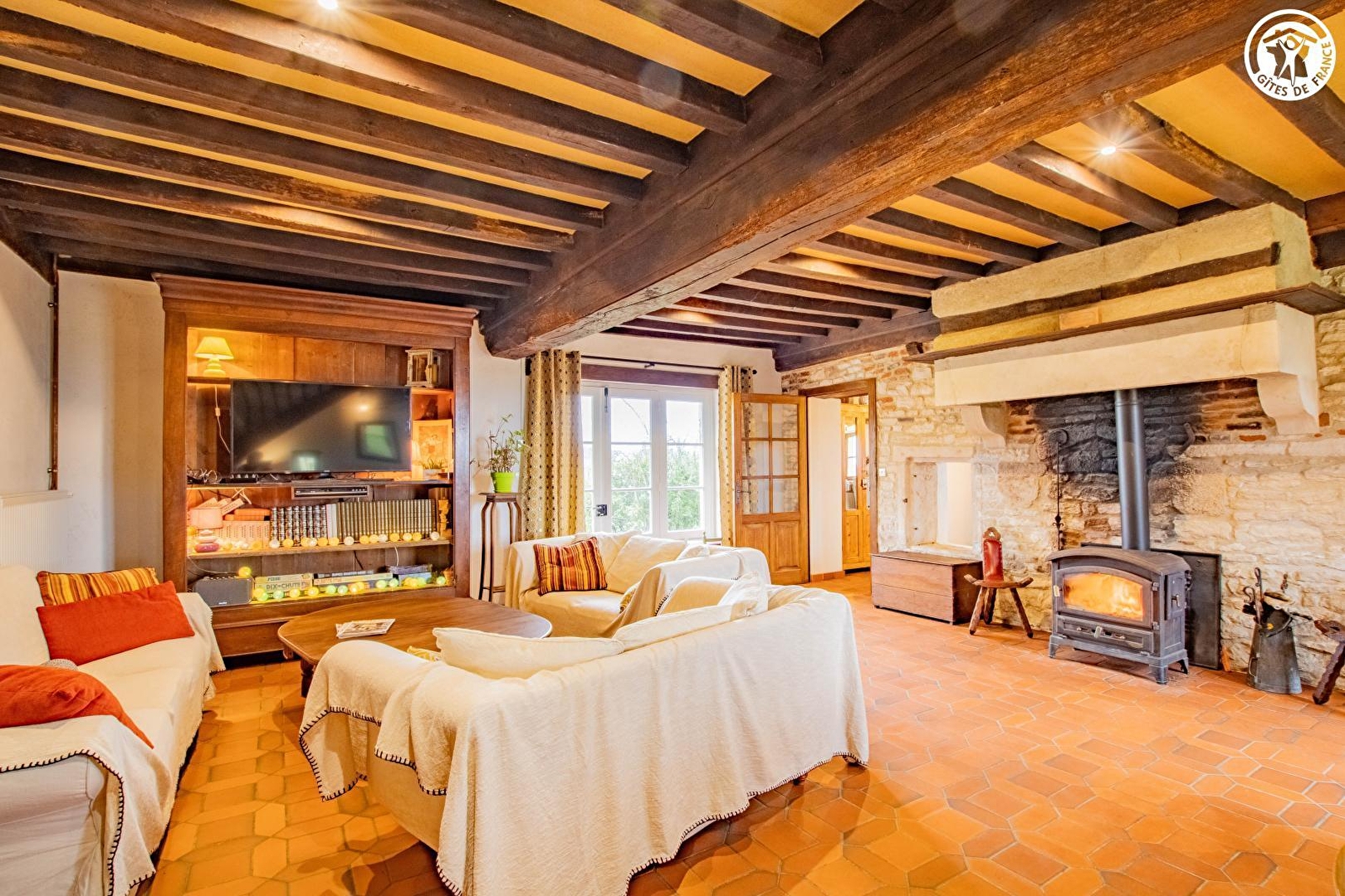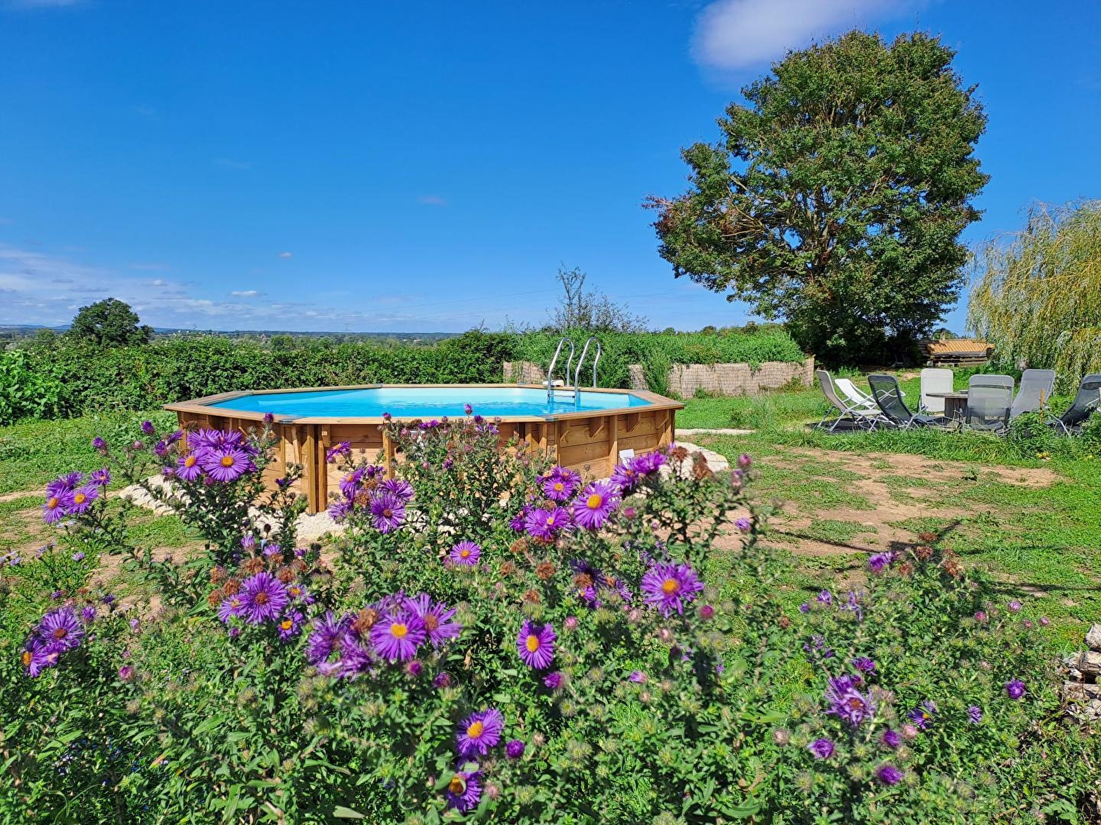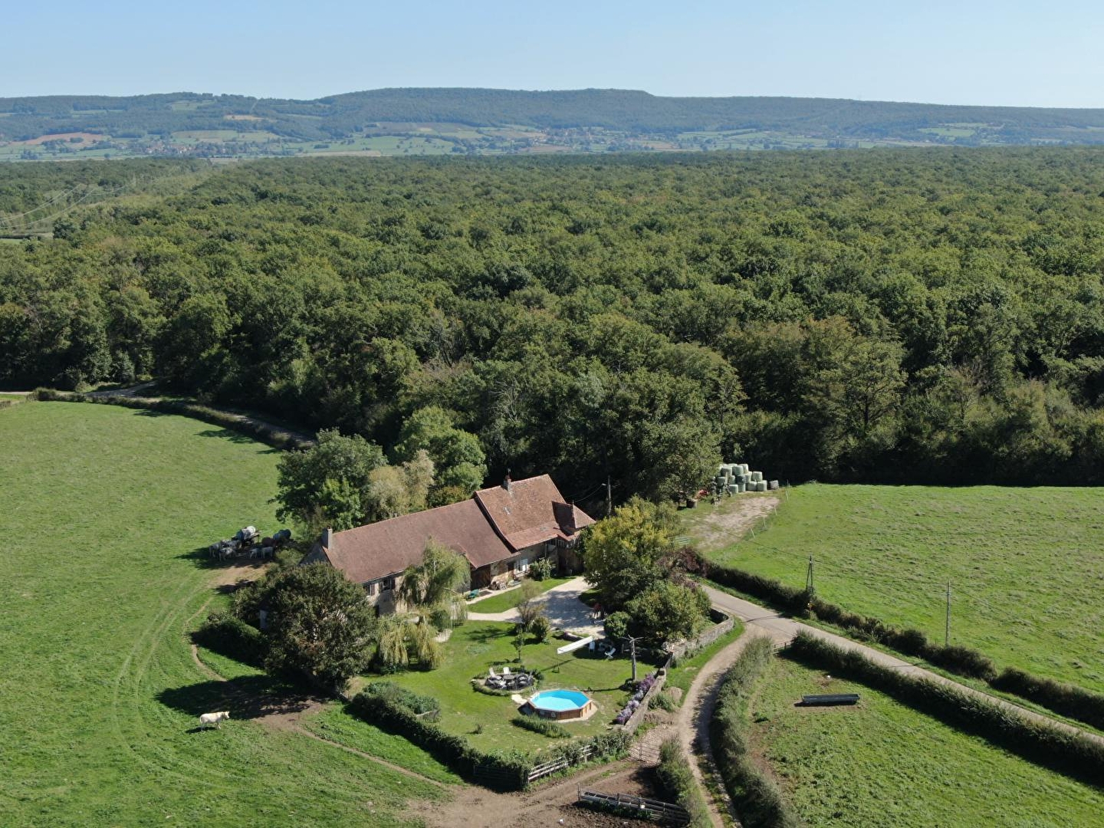 Ravissante ferme traditionnelle du XVIIe pétrie d'histoire, soigneusement réhabilitée (liée jadis à un domaine seigneurial connecté à l'abbaye de Cluny), lovée en pleine campagne au sein d'un hameau "rural dispersé", en lisière de prairies bocagères (avec les paisibles vaches charolaises comme voisines privilégiées) & d'une vaste forêt à deux pas d'un petit étang, non loin du pittoresque "cœur" du village. Calme & totale tranquillité, au creux d'une bucolique vallée (& sa rivière poissonneuse toute proche), magnifique écrin de nature & verdure protégé en "Zone Natura 2000" & ZNIEFF pour son riche écosystème faunistique & floristique. Cadre champêtre & site naturel de toute beauté, 100% reposant. Le privilège de pouvoir observer la faune sauvage sur place (chevreuils, renards, sangliers, hérons, aigrettes…). Spacieux gîte de très bon confort. Chaleureux cachet campagnard mixant l'esprit d'une douce "maison de famille" à l'âme dépaysante d'une ancienne demeure (belle restauration patrimoniale : conservation des poutres & charpente, majestueux manteau de cheminée en pierre, niches en pierres, linteaux en bois… d'origine). Beaucoup de charme & caractère. Ambiance cosy & très douillette. Agréable jardin aménagé (2500m²) proposant : salon de jardin ombragé sous un saule pleureur, piscine "hors-sol" (5x3m), filet de badminton, terrain de pétanque "naturel" côté cour, divers espaces de repos & balançoire à l'arrière de la maison. Très belle vue dégagée sur la campagne environnante.