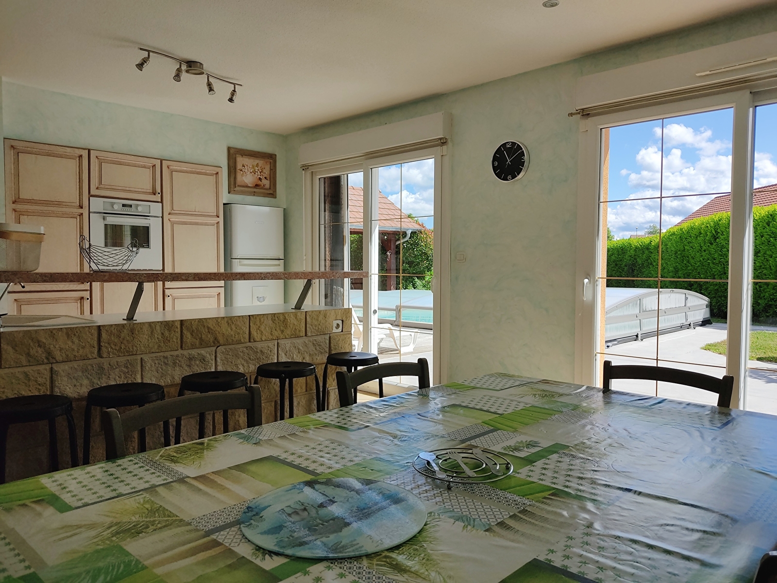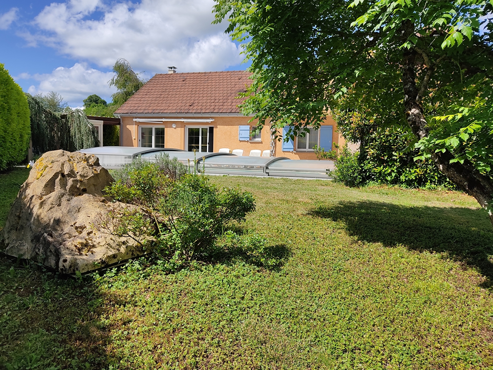 Joli pavillon plain pieds, dans lotissement paisible ,agrémenté d'une piscine couverte d'un abri modulable et chauffée de mai à septembre, d'un jardin et d'une terrasse.