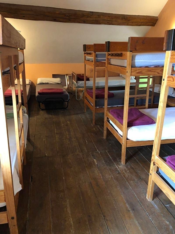 · 1 dortoir pour 16 personnes avec 4 lits simples et 6 lits superposés, communicant avec un autre dortoir pour 16 personnes, composé de 6 lits simples et 5 lits superposés.