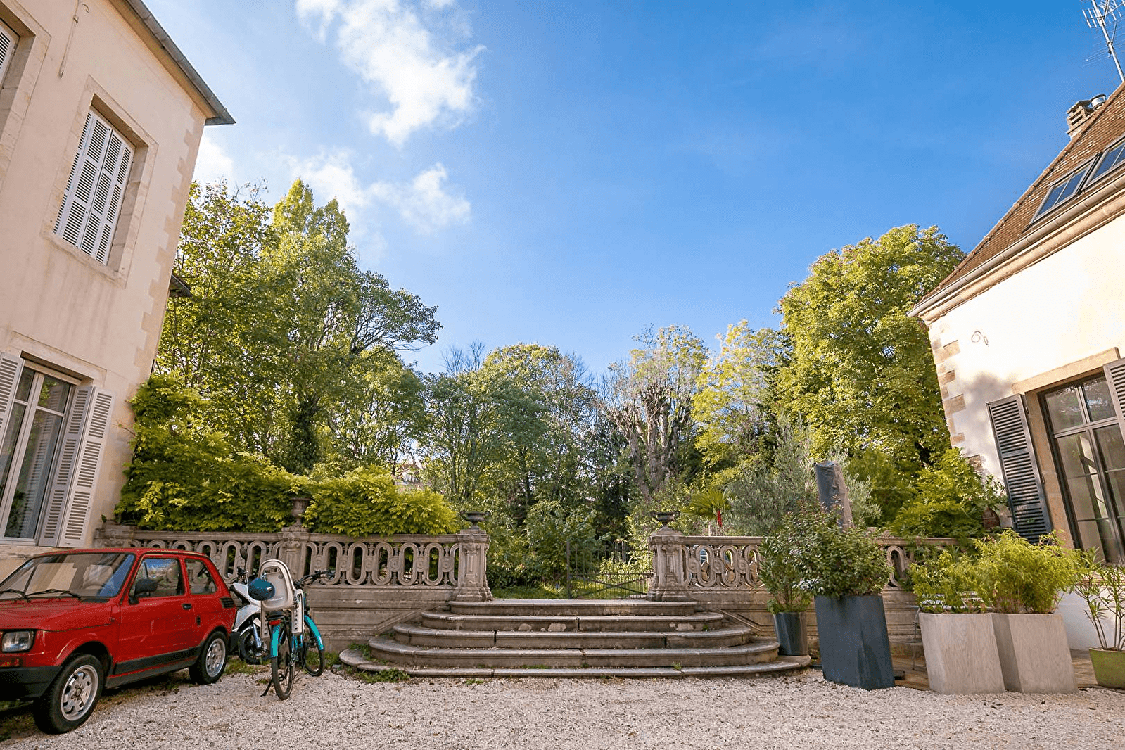 Une place de parking dans la cour.