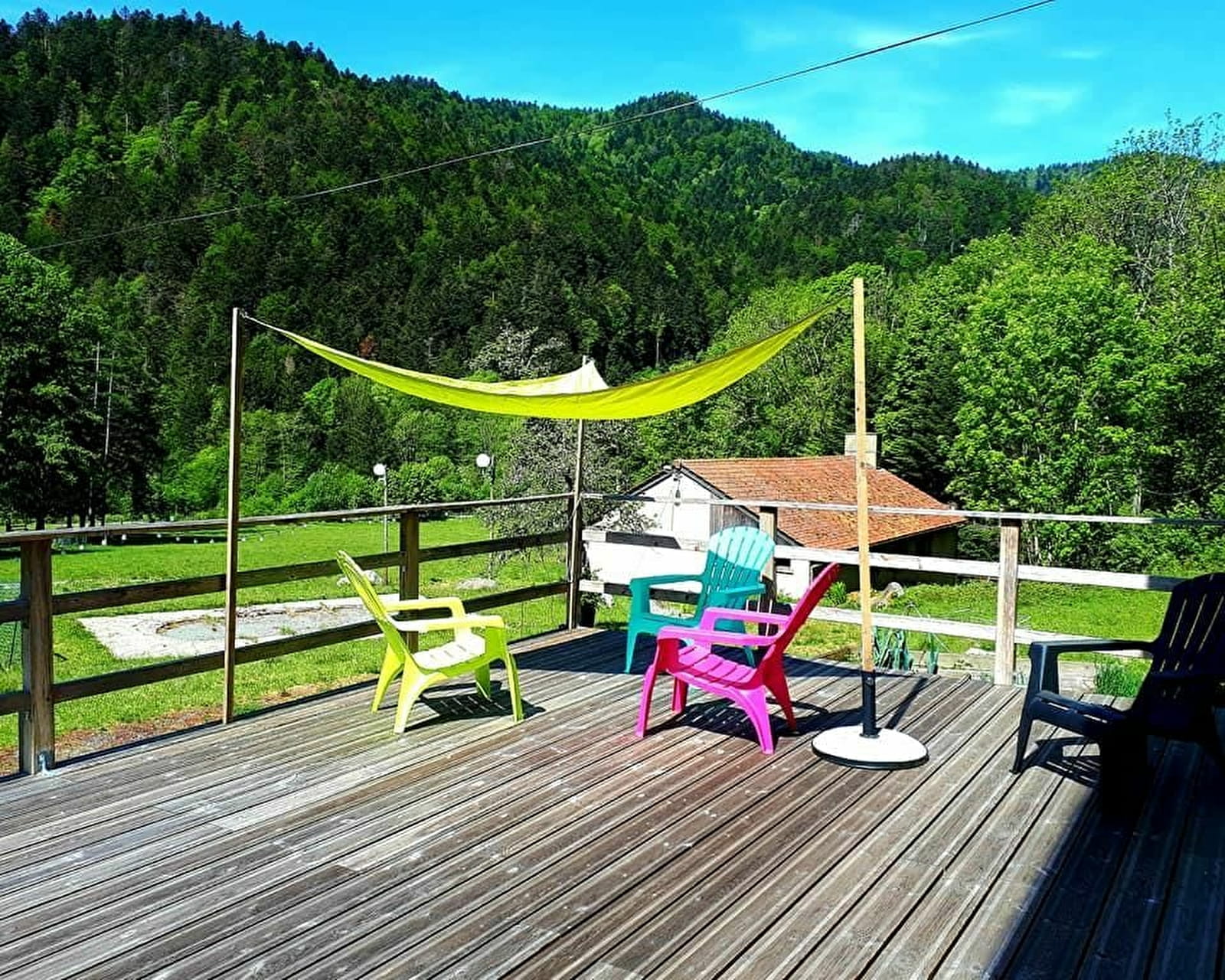 Gîte installé dans une ancienne colonie de vacances, au pied du Ballon d'Alsace. Situé à 600 m d'altitude, dans le parc naturel régional des Ballons de Vosges et en accès direct avec la forêt, vous serez proches de plusieurs chemins de randonnées à pieds ou à vélo dont le GR5.