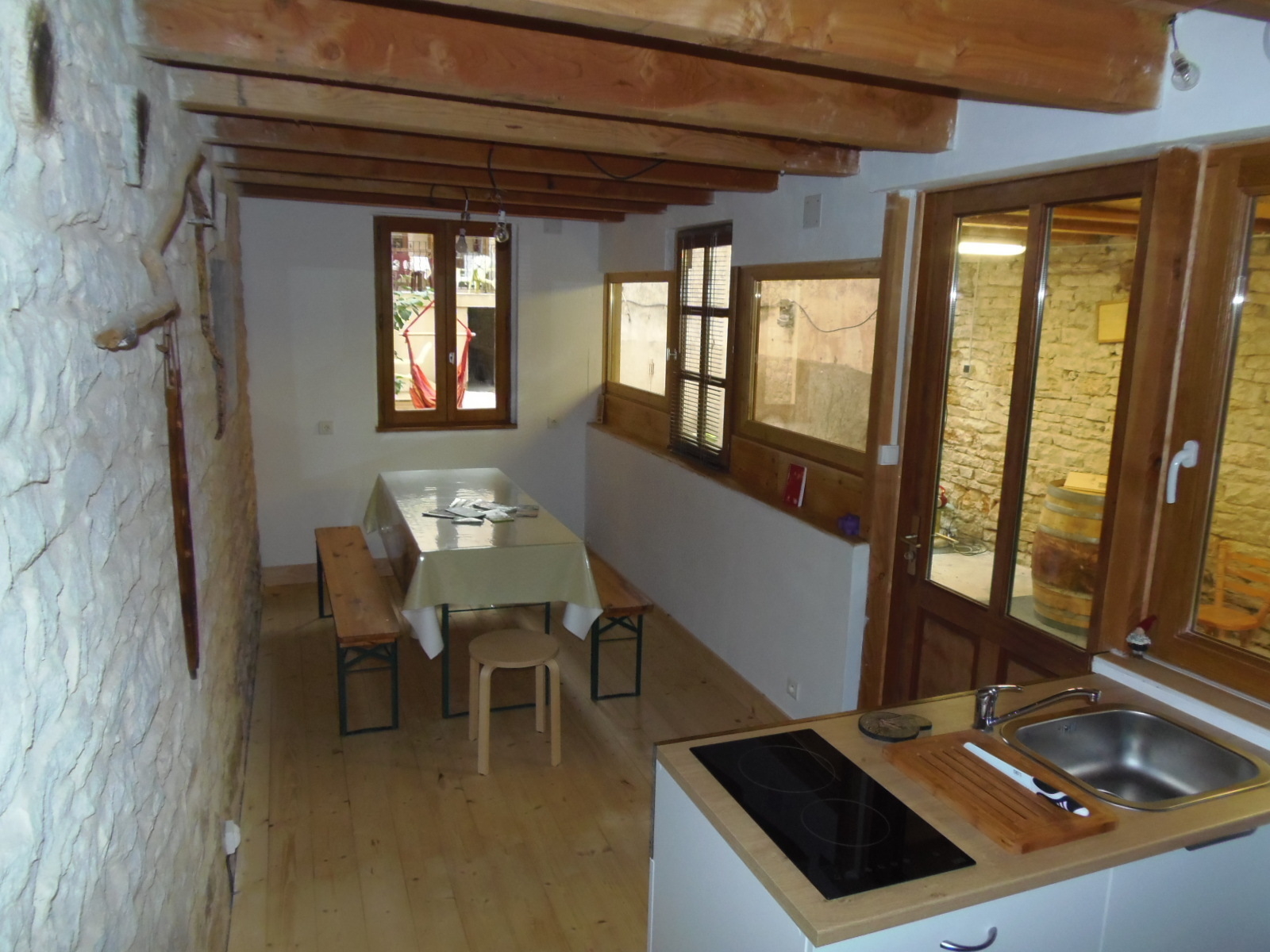 La Coquille de Jouvence est un gîte d’étape atypique dans un espace privé et clos. Accès indépendant avec clef, aucun vis-à-vis et calme. Ce lieu d’accueil est organisé comme suit : Gîte sur 3 niveaux comprenant : 1 dortoir commun (5 couchages), 1 espace détente offrant 4 couchages supplémentaires, 1 cuisine équipée (gestion libre – pas de repas). 1 salle d’eau privative avec douche et WC indépendant (non attenant au gîte) - Cour, patio abrité et jardin. Coins salons de jardin.