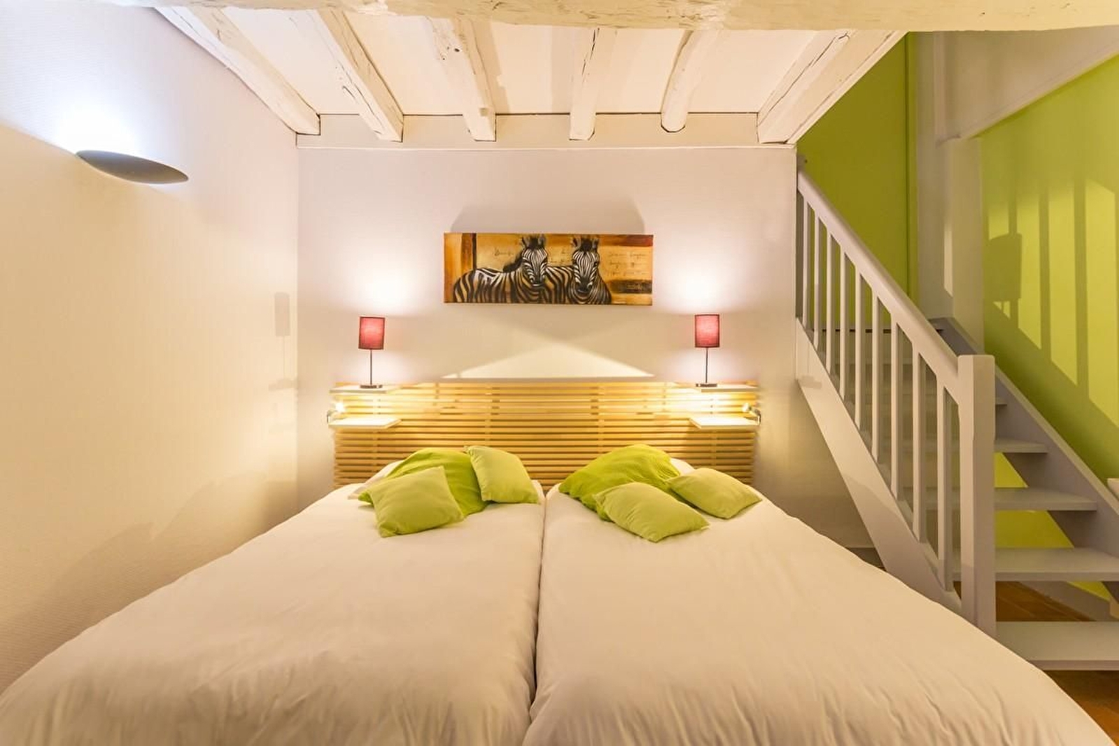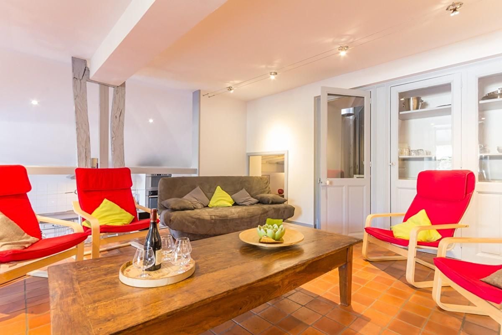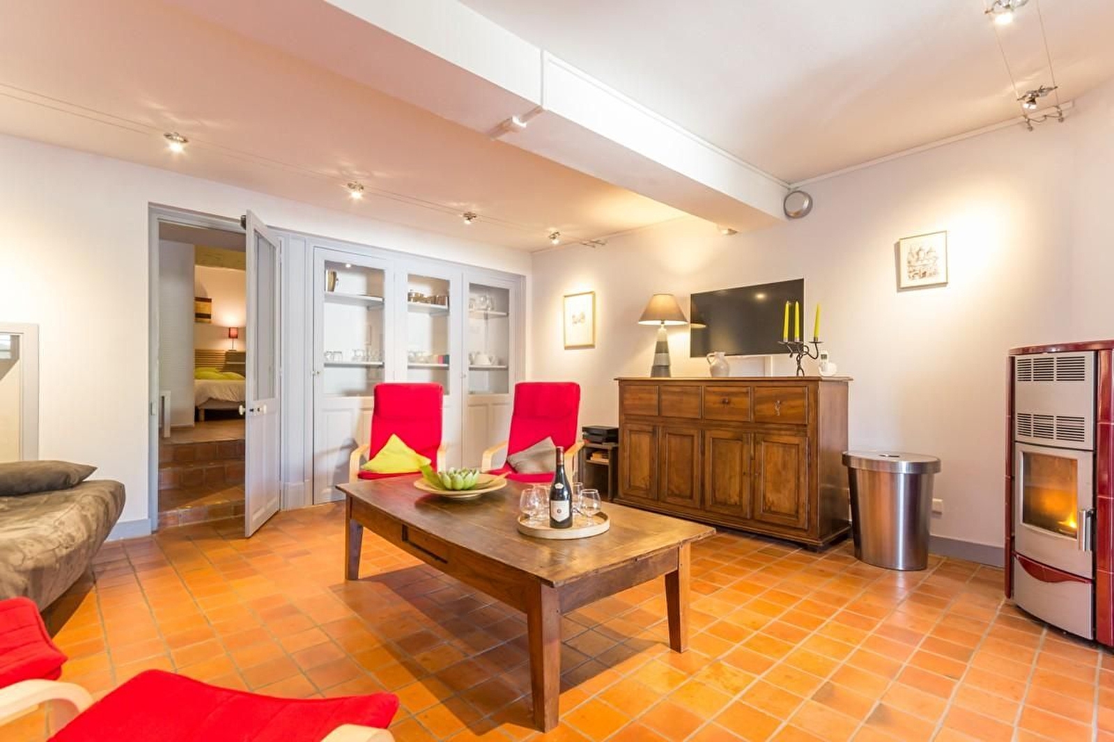 À l’extérieur, profitez d’un jardin clos de 500 m² avec vue imprenable sur la collégiale, piscine tubulaire chauffée (7,32 x 3,66 m, utilisable d’avril à septembre selon météo), barbecue électrique, 4 vélos à disposition et vélo d’appartement. Borne de recharge pour véhicule électrique. Parking gratuit dans la rue.