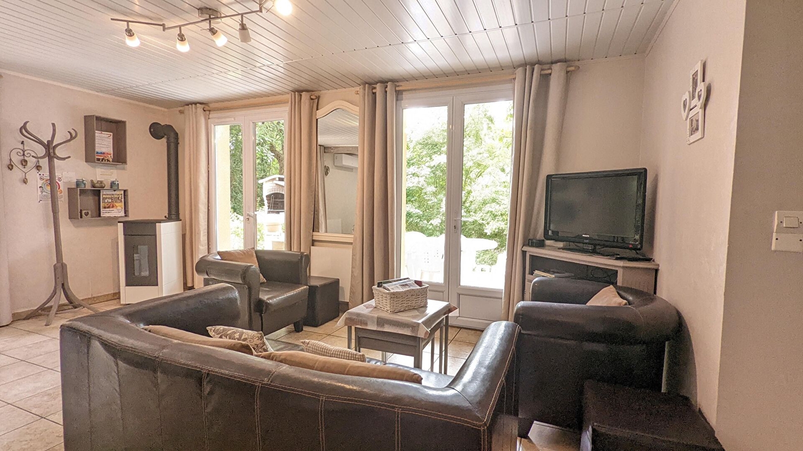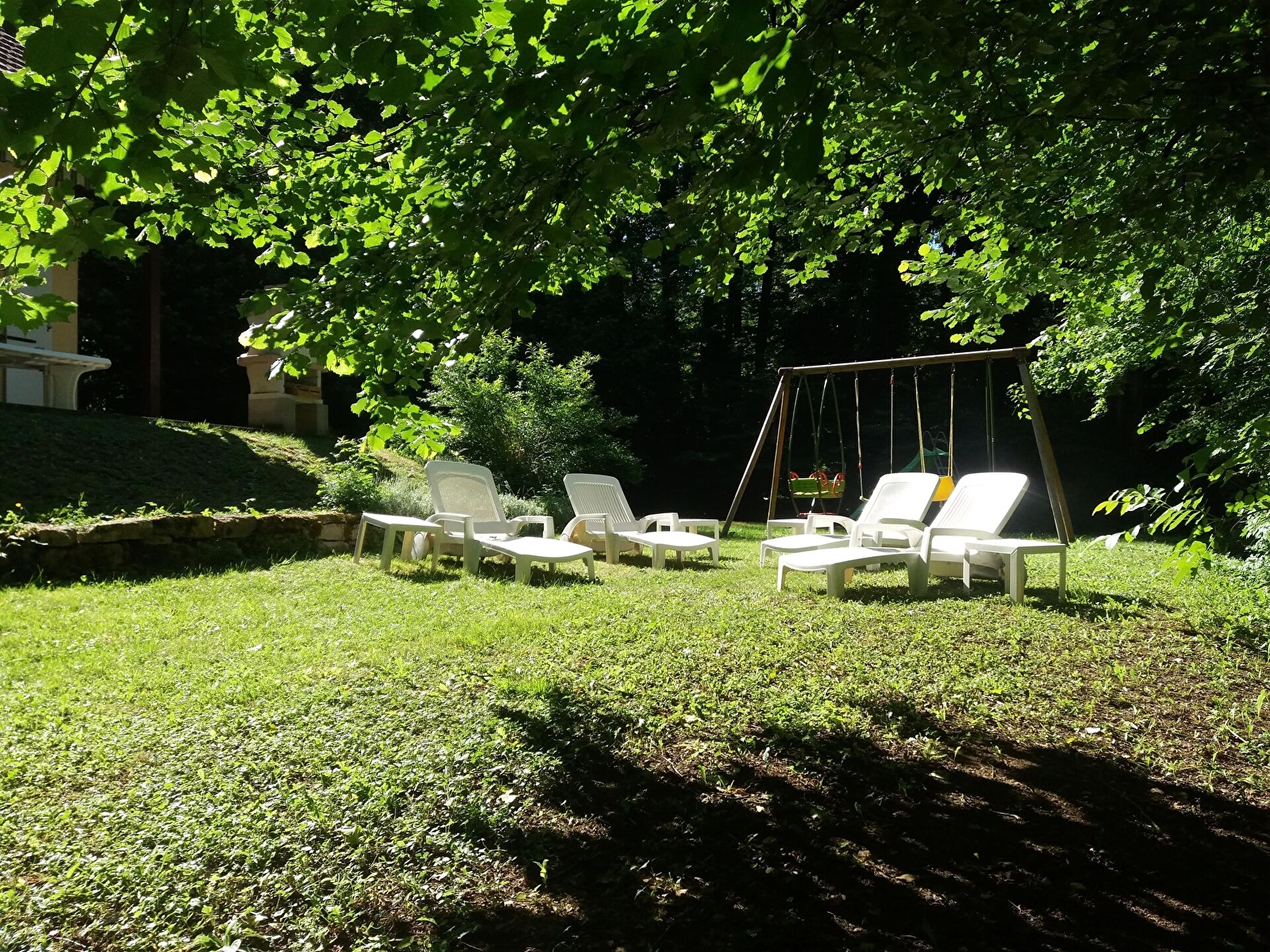 Extérieurs aménagés avec des jeux pour enfants, table de ping-pong, râtelier pour vélos et chaises longues. Le gîte comprend également : une terrasse avec table de jardin et barbecue (charbon non fournis). Terrain non clos. Terrain de tennis communal, situé à 200 m de la propriété, est accessible gratuitement, matériel fourni.