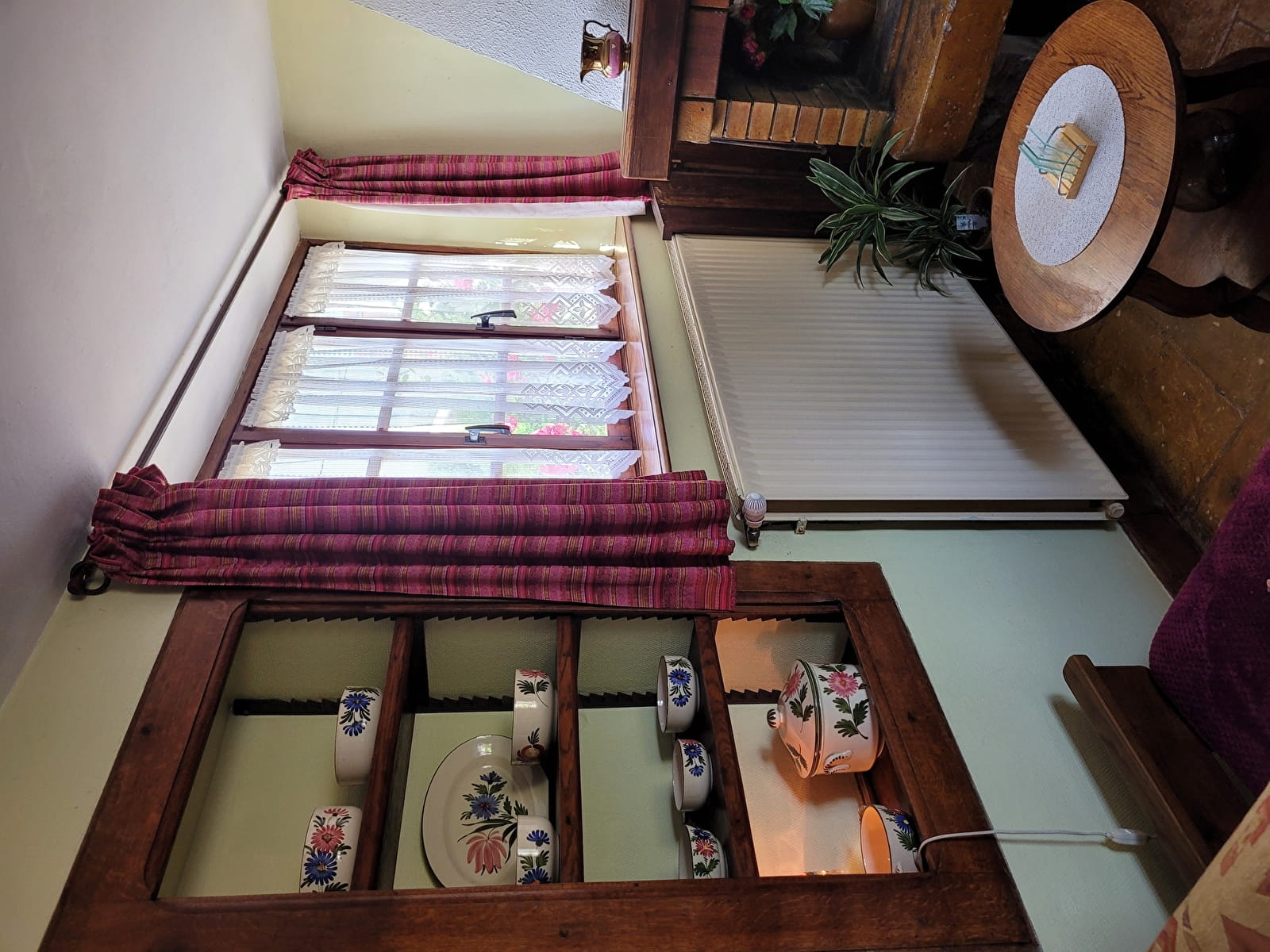 Dans un écrin de verdure, sur les hauteurs d'un petit village haute-saônois situé en limite des Vosges, au pays de la verrerie, du plateau des 1000 étangs avec sa faune et sa flore, des bonnes saveurs, un meublé pour 2 personnes vous attend. Sa cuisine est joliment décorée par de la belle vaisselle et des meubles anciens cirés, sa chambre au calme et fraiche vous permettra de passer de bonnes nuits. De plain pied, vous accèderez à un grand jardin clos par des murs en pierre et de jolis rosiers, où vous pourrez faire une sieste, manger ou lire un bon livre.