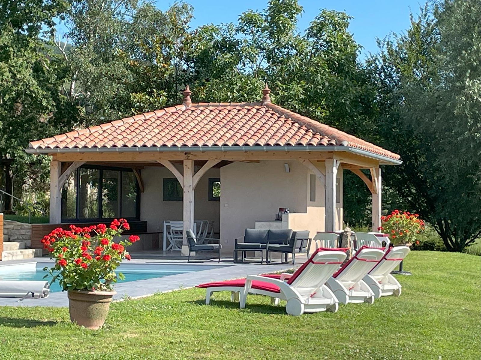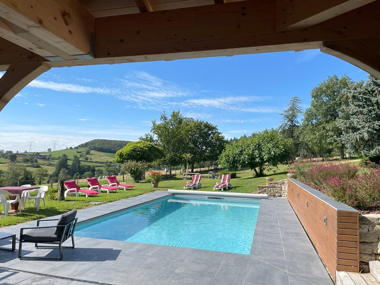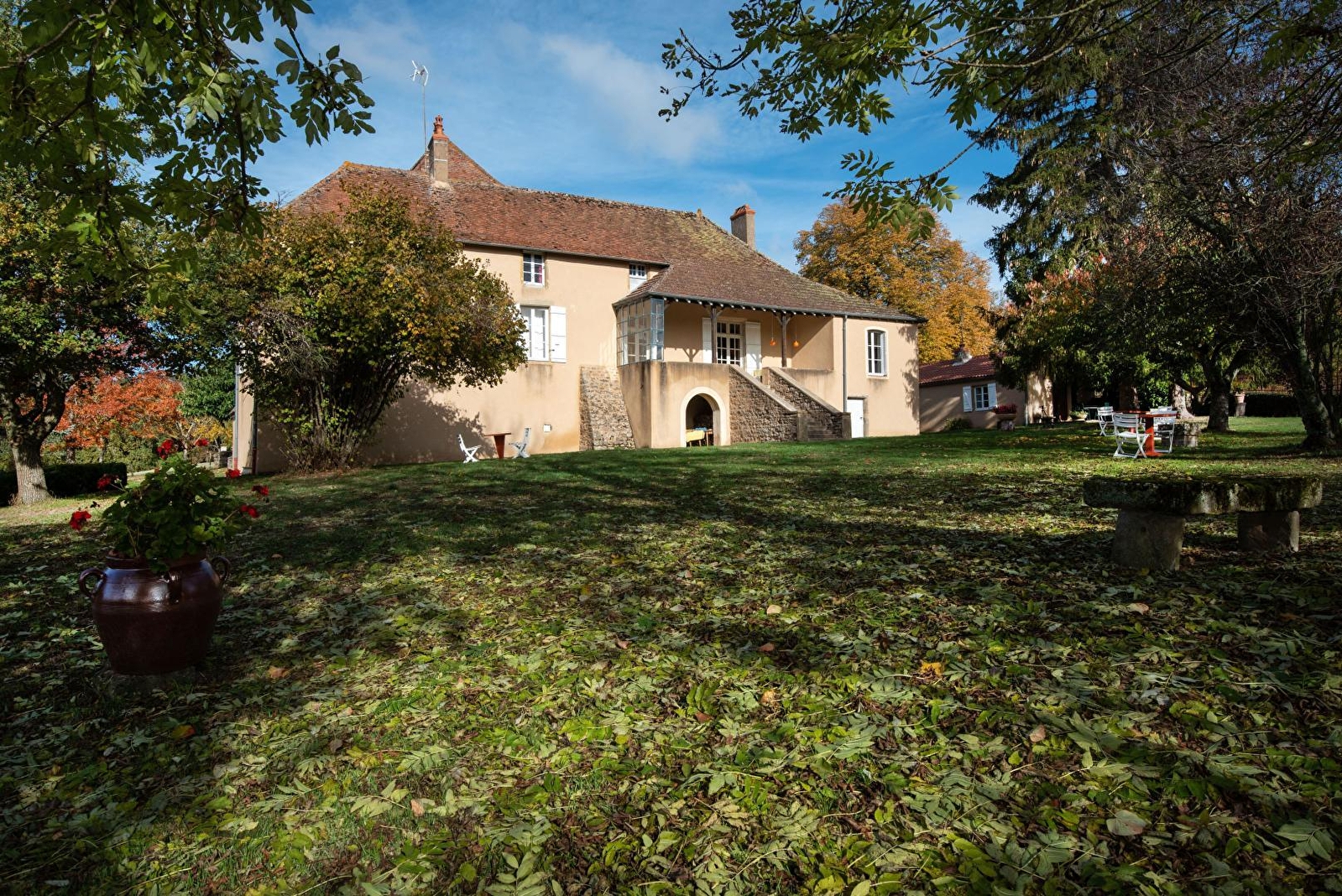 Élégante demeure de caractère de 1690 pétrie d'histoire, propriété familiale depuis le XVIIIe, jadis ferme viticole liée à l'abbaye de Cluny, sise au calme en pleine campagne vallonnée au sein d'un paisible petit hameau adossé à flanc de coteau exposé, au creux d'un bucolique cirque de bocage blotti sous les collines boisées dominant Cluny. Magnifique écrin préservé de nature & verdure, entre prairies, vignobles & forêts, littéral have de paix & repos lové au cœur d'un site classé "Zone Natura 2000". Belle vue dégagée sur la campagne environnante. Superbes panorama & paysages. Exceptionnel domaine privé de 30 ha, en très large partie "naturel" (disposant entre autres d'un étang de pêche avec carpes & gardons et d'une grande forêt parsemée de sentiers de randonnées), comprenant un agréable parc clos de 5000m² aux arbres centenaires soigneusement aménagé (accueillant une ânesse, un poney & un arboretum riche de plus d'une dizaine de variétés) doté d'une belle piscine chauffée (9x4.5m) et de nombreux espaces ludiques de repos & détente. Spacieux gîte de bon confort. Beaux volumes. Chaleureux cachet campagnard alliant l'esprit d'une "maison de famille" & l'ambiance dépaysante d'une ancienne demeure (manteau de cheminée, plafonds à la française, portes de placards d'origine…). Beaucoup de charme. Large balcon-terrasse abrité en "galerie mâconnaise" traditionnelle. Ravissant jardin privatif, engazonné, arboré & végétalisé (espace réservé sur le parc).