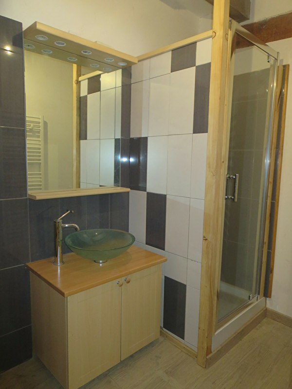 Le grand meublé est composé d'une cuisine toute équipée ( gazinière mixte gaz et induction, four, micro-onde, lave-vaisselle, bouilloire, cafetière ... ), une salle de bain avec douche, un salon avec canapé convertible 2 places, une chambre avec deux lits superposés et une chambre parentale avec un lavabo, ainsi qu'un lit double et un lit simple.