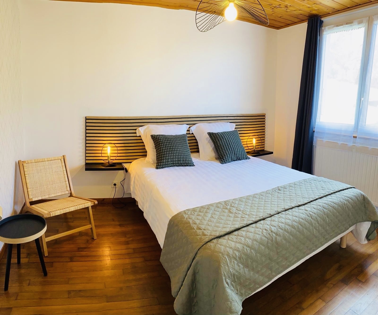 3 chambres : une chambre avec lit double au rez de chaussée. À l’étage, une chambre avec lit double communicante avec la chambre des enfants composée de 4 lits simples.