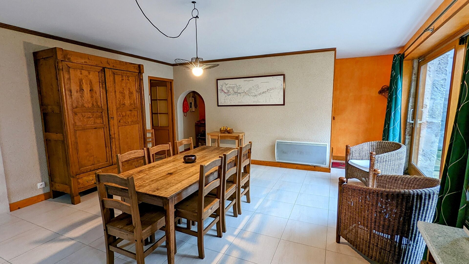 Rez-de-chaussée: vaste salle à manger avec cuisine équipée. Grand salon avec baies vitrées. Buanderie. Wc.