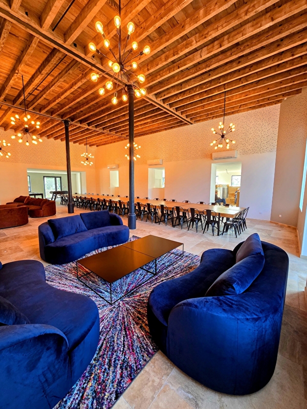 - Salle de séminaire climatisée : 90m² accolée au salon.