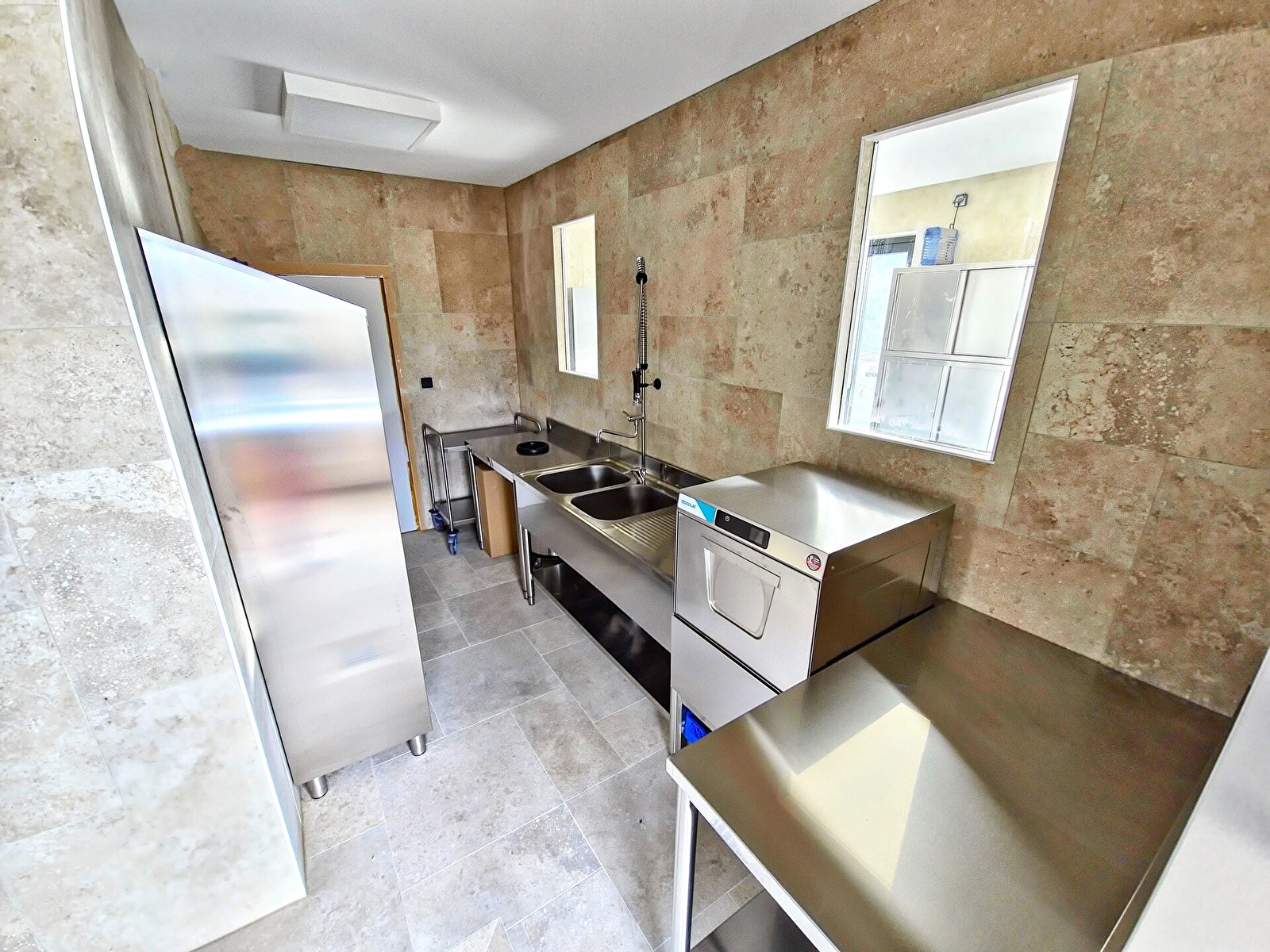 - Cuisine professionnelle: 50m² qui donne accès directement sur le salon, la salle de séminaire et la terrasse.