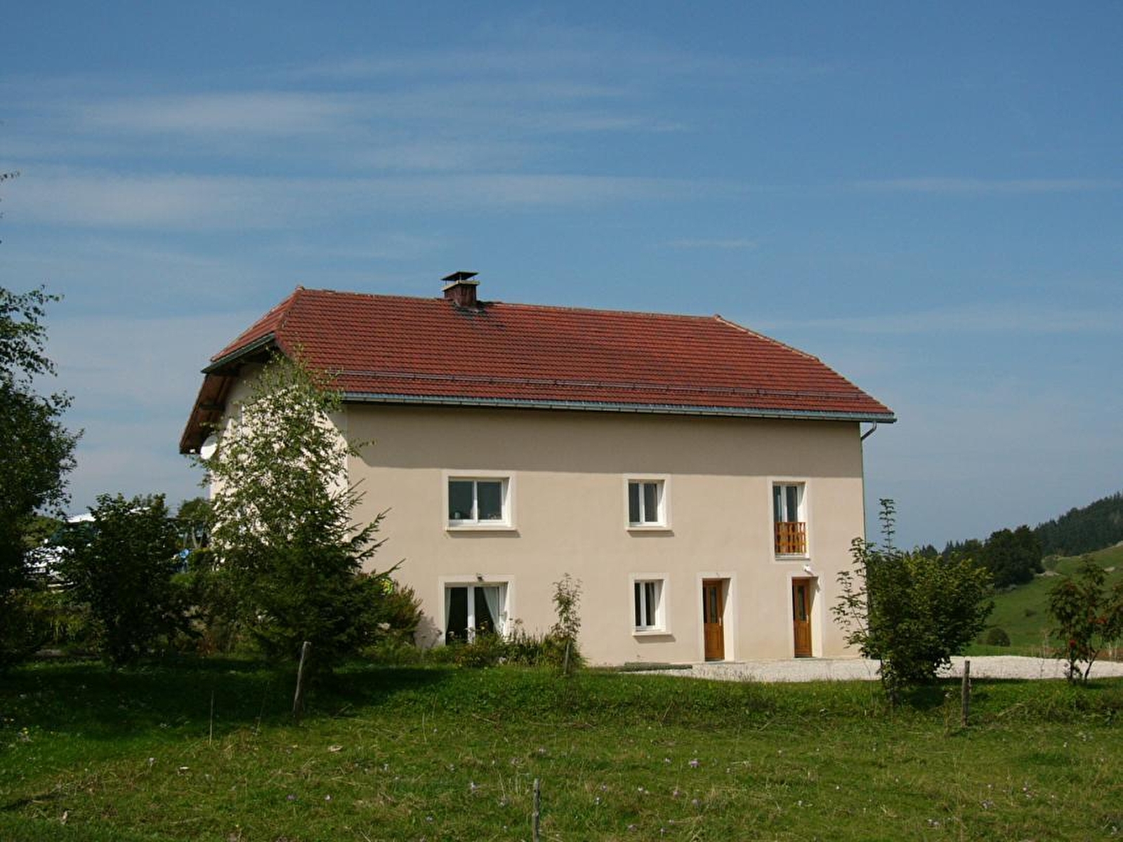 Appartement de plain-pied dans la maison du propriétaire face aux sommets du Jura avec entrée indépendante, offrant tout confort et belles prestations. Salon-séjour de 33 m², canapé clic-clac 2 pl, TV couleur et DVD. Cuisine intégrée toute équipée, réfrigérateur-congélateur. Ch1: 1 lit 2 pl, 2 lits 1 pl. Salle de bain, WC indépendant. Local pour skis et vélos dans l'entrée. Terrain attenant non clos, salon de jardin, barbecue, parking privé, jeux pour enfants. Toutes charges comprises. Ski de fond à 50 m et ski de piste à 500 m. Animaux acceptés sur demande. Wifi