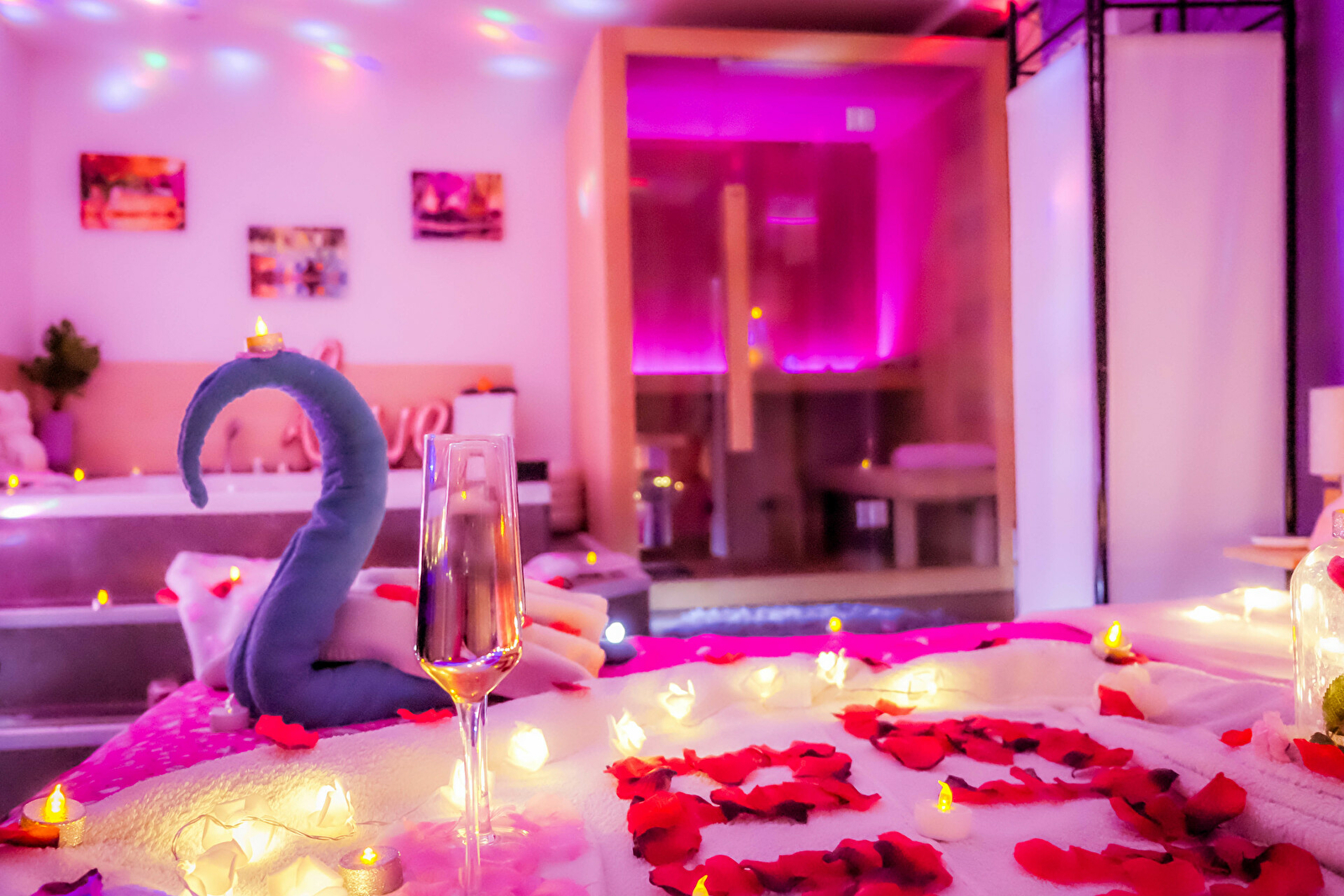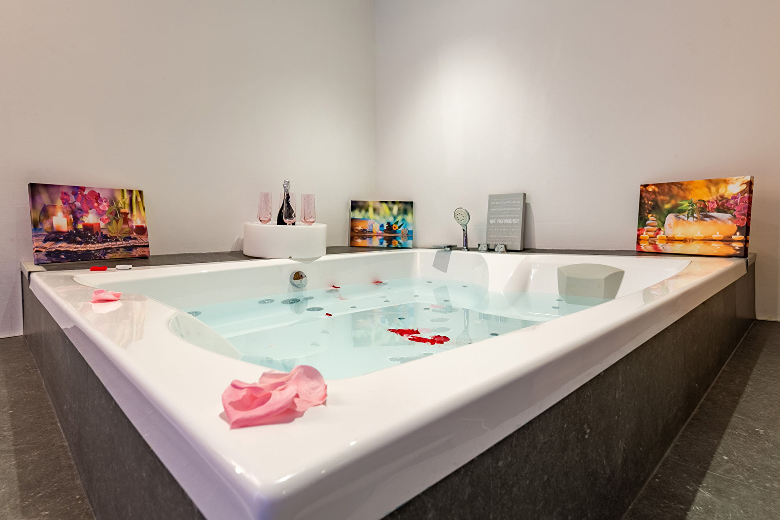 Venez découvrir notre appartement« Felicità », équipé d’un salon cocooning et cosy , d’une cuisine équipée, d’un large balnéo jacuzzi dimensions 160 x 190, d’un lit king size ainsi que d' une grande douche et d’un sauna finlandais 3 places ... profitez du farniente à chaque moment, à chaque seconde... sans vous encombrer du passé ou vous soucier du futur.