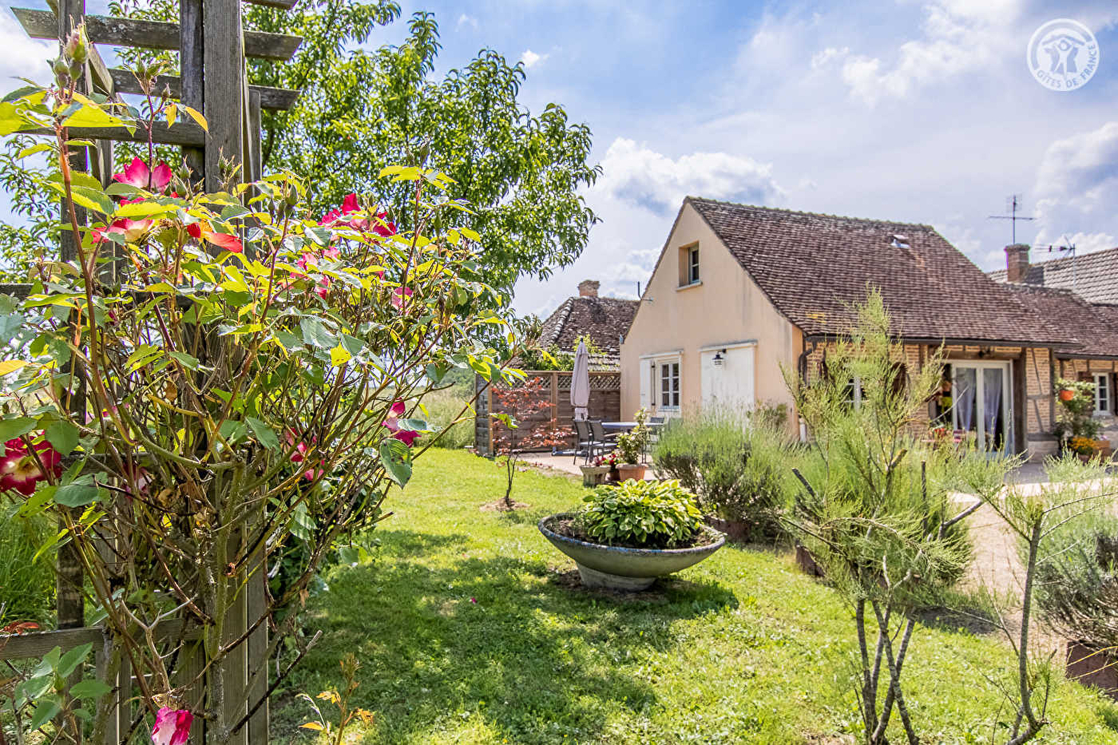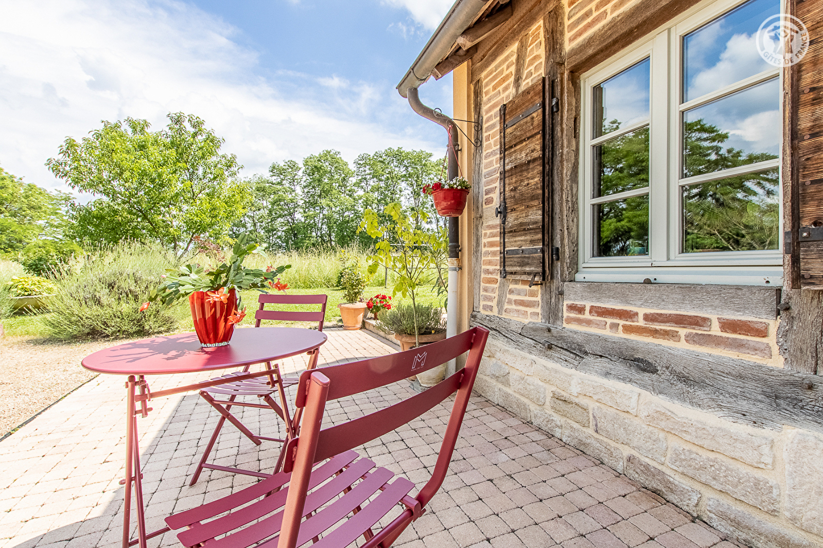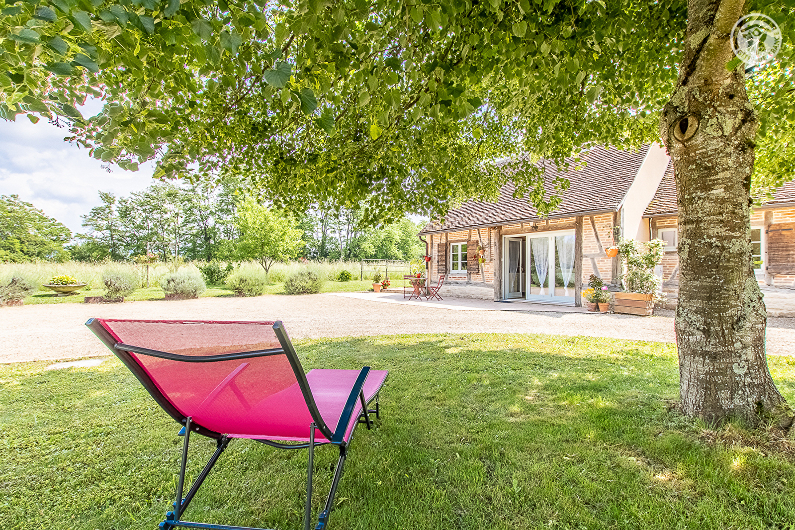 Tous deux passionnés de nature et d'environnement, Patricia & Bernard vous accueillent dans une ravissante aile contemporaine, aménagée en briques & pans de bois dans le respect de l'architecture traditionnelle et une démarche éco-touristique, prolongeant l'élégante ferme bressane du 19ème siècle qu'ils occupent, elle également parfaitement restaurée dans les règles de l'art. Au cœur d'un paisible mini hameau résidentiel niché en pleine campagne sur les rives d'une bucolique petite rivière poissonneuse, au creux d'un charmant cadre champêtre préservé de prairie & forêt, à 5.5 km du centre du village de Bruailles, disposant entre autres d'un city-stade et d'un plan d'eau de pêche réputé, avec aire de pique-nique, jeux pour les enfants, parcours VTT et parcours santé, parfait « spot » pour se ressourcer en famille. Spacieux gîte de très bon confort. Chaleureux cachet campagnard aux accents contemporains. Beaucoup de charme. Ambiance zen twistée par un doux camaïeu de couleurs. Belle chambre lovée sous les toits dans un esprit « cocon cabane » pour le bonheur des enfants. Large terrasse abritée, sans vis-à-vis, jouissant d'une apaisante vue dégagée sur la prairie environnante, complétée par un agréable jardinet privatif. Magnifique propriété soignée de 5000m² entretenue dans un esprit de permaculture, végétalisée, arborée & fleuri, comprenant un verger (pêchers, pruniers, pommiers… / cueillette possible), une petite mare avec grenouilles, une table de ping-pong et un terrain de pétanque naturel sur cour.