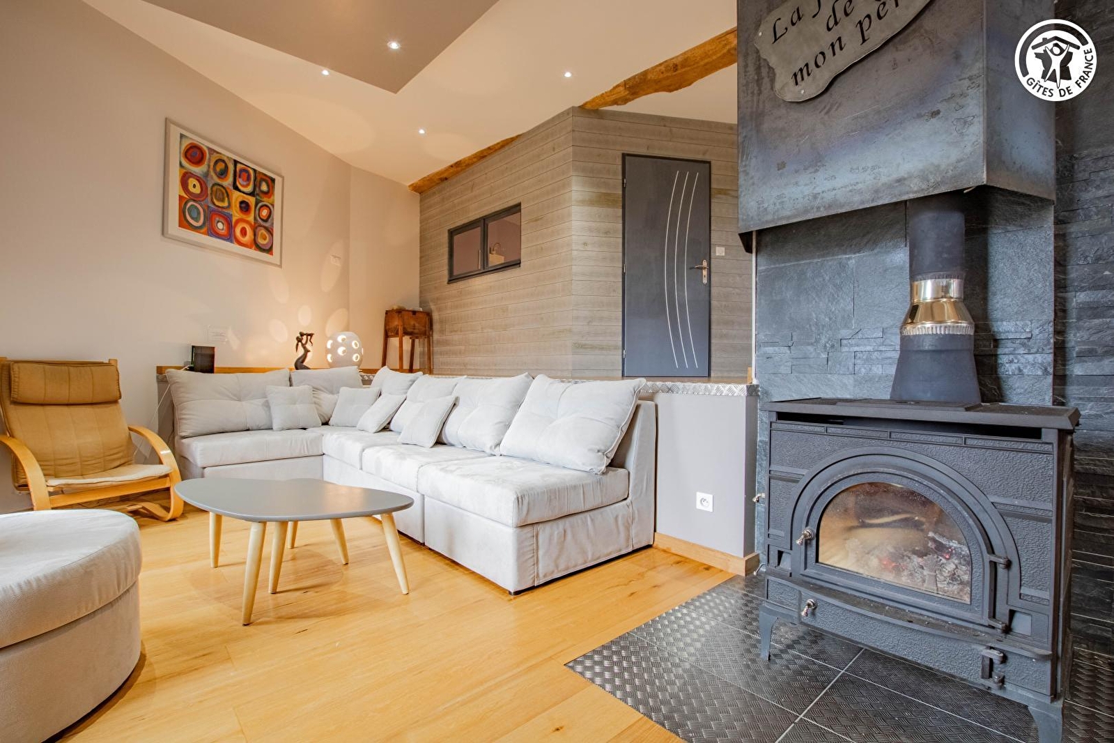 Composition : Maison de village mitoyenne. Chauffage central électrique + poêle à bois. Wifi (fibre). Rdc : chambre (lit 2 p. 140x190cm) avec salle d'eau privée (douche), buanderie, Wc indépendant. 1er étage : séjour-cuisine-salon, 1 chambre en "second jour" sans ouverture directe sur extérieur (lit 2 p. 160x200cm) avec sde privée (douche), Wc indépendant. 2ème étage : salon TV en mezzanine (canapé conv. 2 p. 140x190cm en appoint), 2 chambres dont 1 en "second jour" (3 lits 1 p. 90x190cm dont 2 superposés / lit 2 p. 140x190cm), sdb (douche + "baignoire encastrée" + Wc). Balcon-terrasse abrité + terrasse gravier & jardin clos 100m² (non attenants / ruelle à traverser) + parking privés. Commerces dont mini supermarché 3 km.