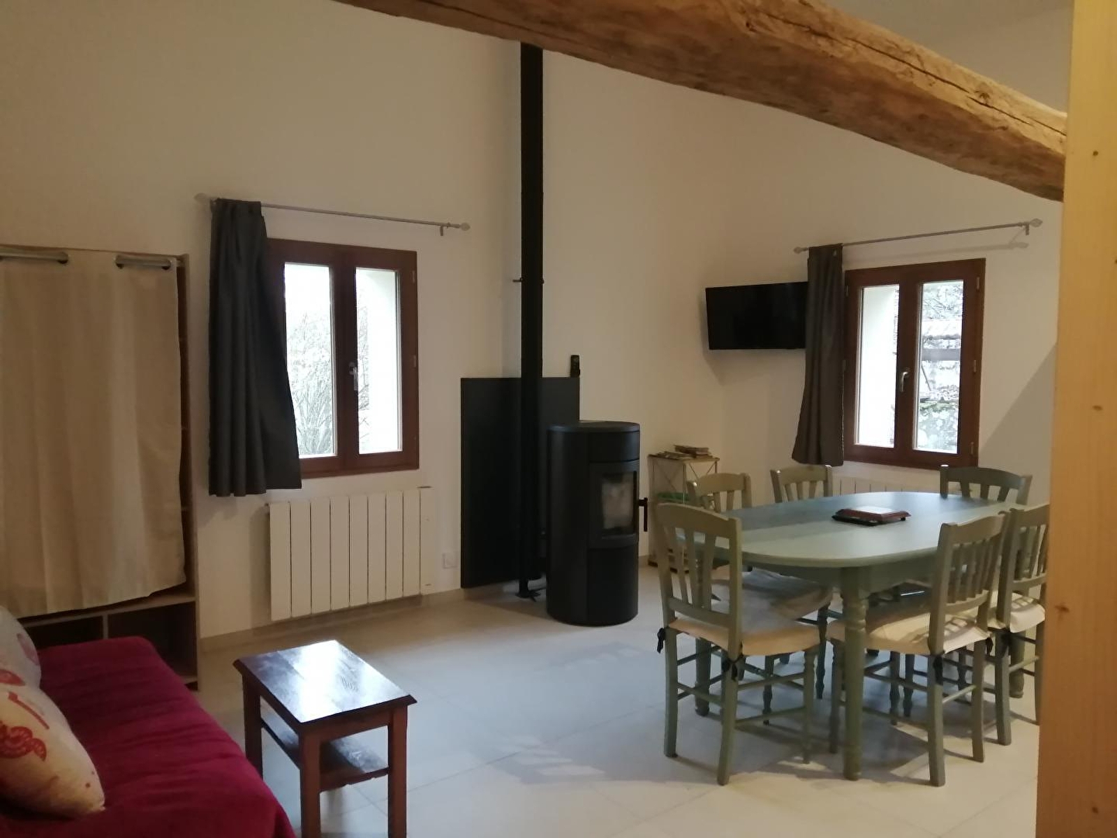 Cette petite maison mitoyenne à celle des propriétaires et entièrement rénovée sera le lieu idéal pour vos futures vacances! Elle se compose d'une pièce de vie avec cuisine équipée, d'un coin salle à manger avec poêle à granulés et d'un espace salon avec canapé convertible pouvant accueillir 2 personnes, d'une salle d'eau avec douche et WC. En mezzanine (accessible par escalier légèrement raide), 2 lits simples (90*190) pouvant être jumelés. Côté extérieur, vous disposerez d'un salon de jardin, de transats et d'un barbecue. Idéalement situé pour découvrir Poligny, capitale du Comté, Arbois, capitale des vins du Jura et les plus beaux villages de France : Baume les Messieurs et Château-Chalon. Vous pourrez également profiter de nombreux circuits de randonnées pédestres et cyclos. Les propriétaires Véronique et René vous proposent également des balades accompagnées avec ânes : 30 euros/personne la demi-journée