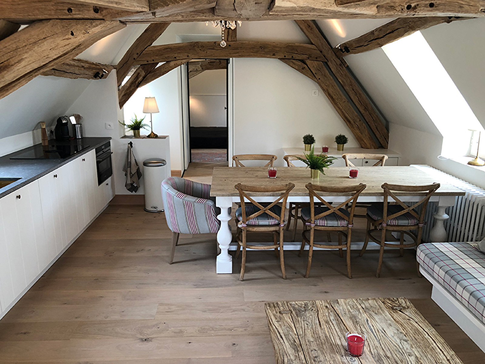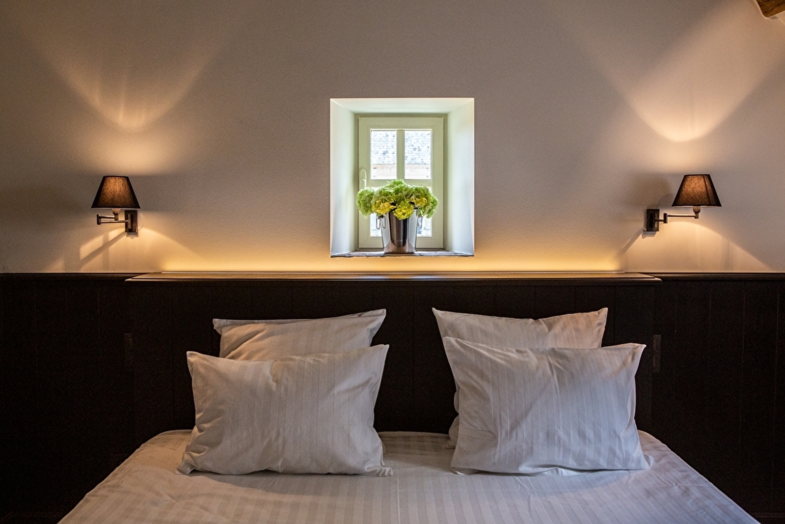 La ferme a été restaurée en respectant et préservant au maximum les différents éléments authentiques, tels que les murs robustes, les impressionnantes charpentes (entièrement intégrées dans les chambres et cottages modernes aménagés avec goût), les anciens escaliers, etc.