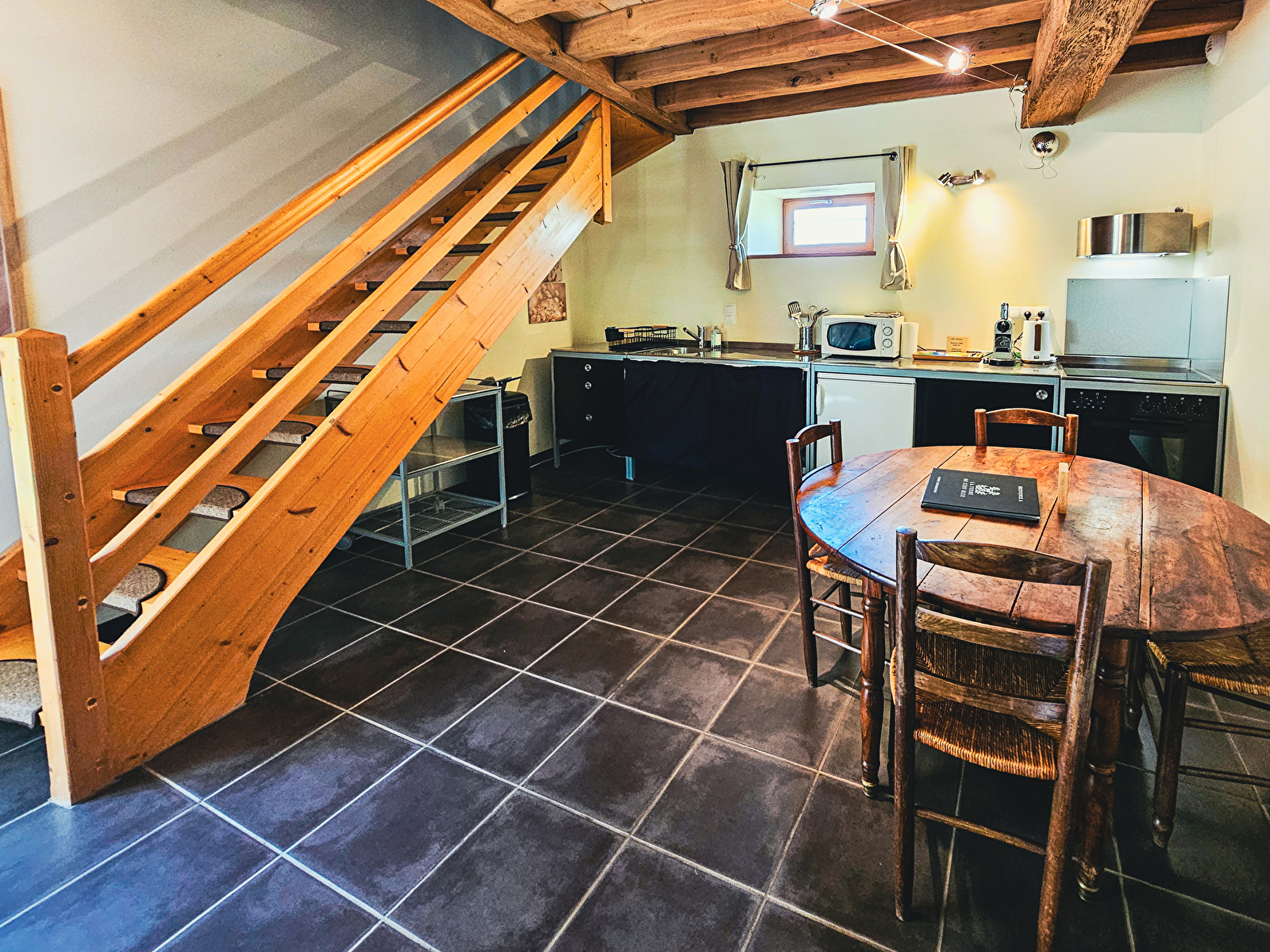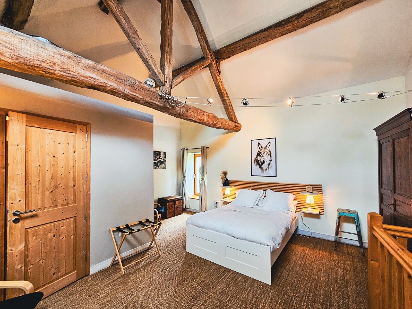 La Ferme du Cerf Bleu, située en Bourgogne, à proximité du village médiéval de Noyers-sur-Serein et des vignobles de Chablis et Tonnerre, vous accueille dans le duplex Le Loup qui offre tout le confort pour 2 personnes. Il comprend, au rez-de-chaussée, une pièce à vivre avec une cuisine équipée, et à l'étage une chambre avec 1 lit 2 pers. et une salle de bain privative. Vous pourrez profiter du jardin commun avec terrasse, barbecue et hamac. Les draps et le linge de toilette sont fournis, et du matériel pour bébé est mis à votre disposition sur demande. Possibilité de réserver votre petit-déjeuner et/ou votre goûter préparé par vos hôtes.