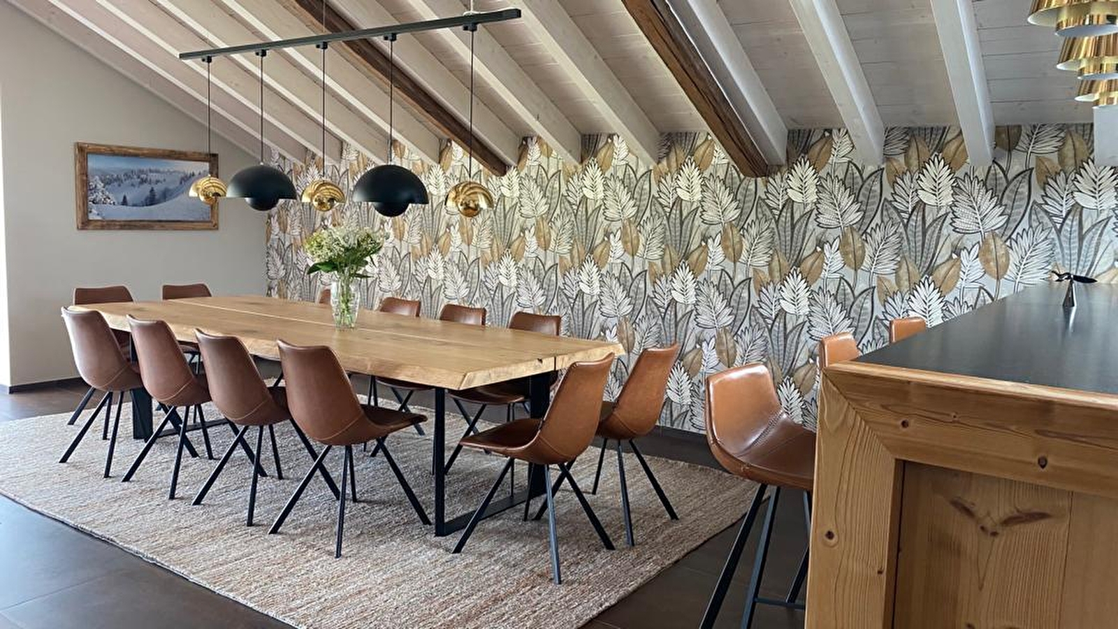 Dépaysement et ressourcement assurés dans cette belle ferme typique du Haut-Jura entièrement rénovée où le charme du vieux bois se mêle parfaitement aux aménagements modernes. Situé au cœur du Parc Naturel Régional, dans un écrin de verdure et à deux pas des remontées et pistes de ski, la ferme du Lanchet vous accueille sur 2 niveaux tout confort et spacieux. Vous disposerez au rez de chaussée d'un vaste hall d'entrée, d'un wc indépendant, d'une cuisine équipée haut de gamme ouverte sur le séjour-salon, et d'un espace jeux pour enfants aménagé sur une petite mezzanine. Vous y trouverez également 5 chambres chaleureuses et cosy, équipées d'un lit king-size (180x200) dont 1 est modulable en deux lits simples. Elles disposent également toutes d'une TV et de sanitaires privatifs, avec vasque et WC séparé. 4 dotées de douche italienne et 1 d'une baignoire. Pour votre confort les lits seront faits à votre arrivée et les linges de toilettes fournis. Côté extérieur, la grande terrasse sera idéale pour les repas pris en famille ou entre amis, sans oublier la détente dans le sauna panoramique ou le bain norvégien. Les activités ne manqueront pas à commencer par la pétanque sur place, la randonnée, le VTT, les balades en raquettes, et le ski avec les remontées mécaniques à quelques encablures. Prestation haut de gamme pour des vacances inoubliables dans les Montagnes du Jura. A découvrir absolument !