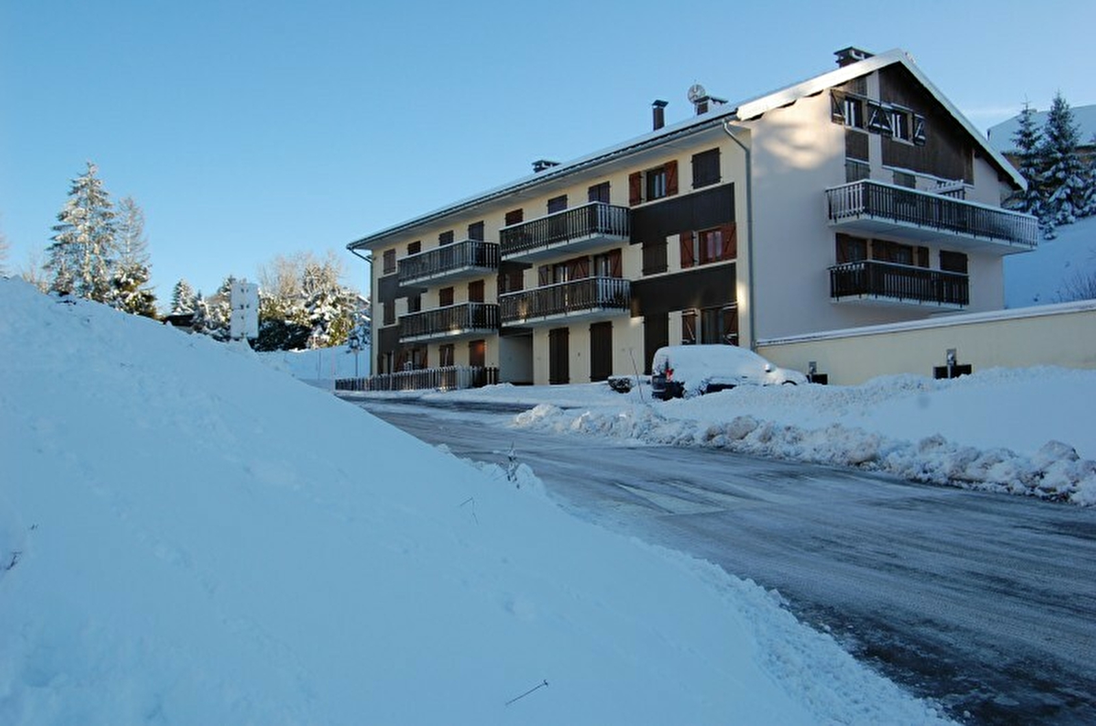 Infos pratiques : Été comme hiver, vous trouverez toutes les activités sur la station ; les pistes de ski alpin se trouvent à 6km, les pistes de ski de fond et le village sont à 500m. Départ Skibus en hiver à 400m.