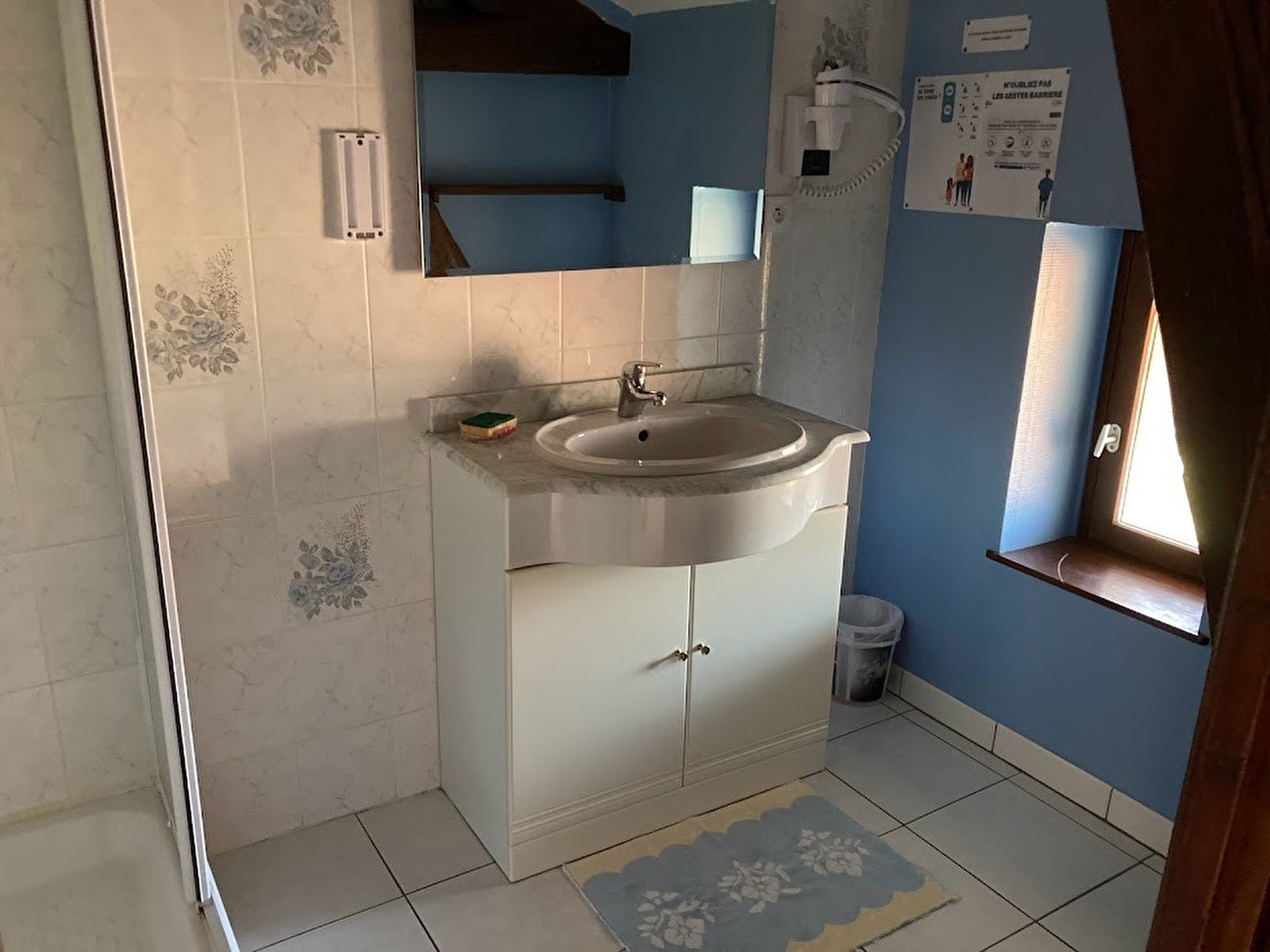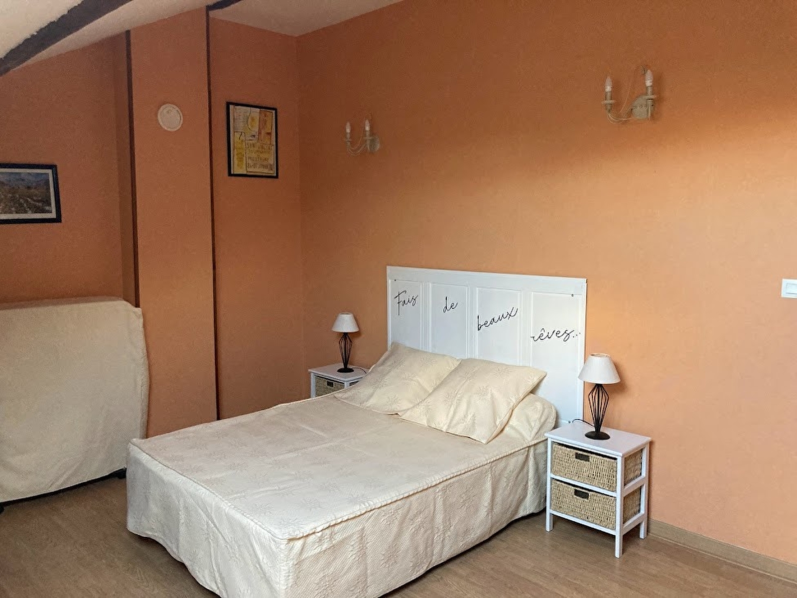 À l'étage : 1 salon, 1 chambre pour 2 personnes avec salle de bain et WC et une autre chambre de 2 personnes avec salle de bain et WC et possibilité de mettre 2 lits d'appoint enfant ou 2 lits bébé.