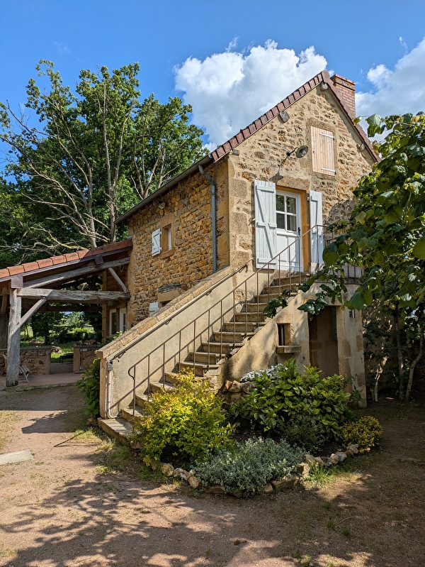 Au cœur d'un parc arboré, vous trouverez notre petit gîte, ancienne fermette typique du Brionnais, à quelques mètres de notre maison, ancienne grange en cours de réhabilitation.