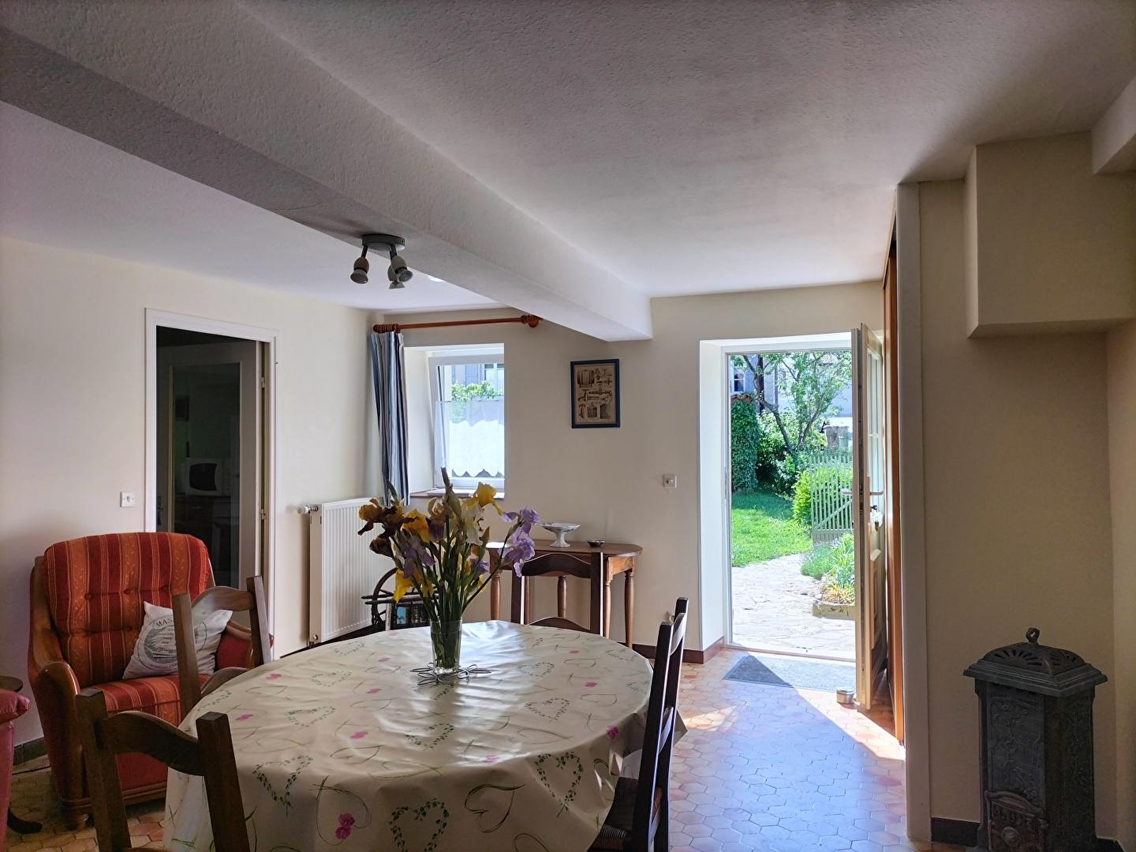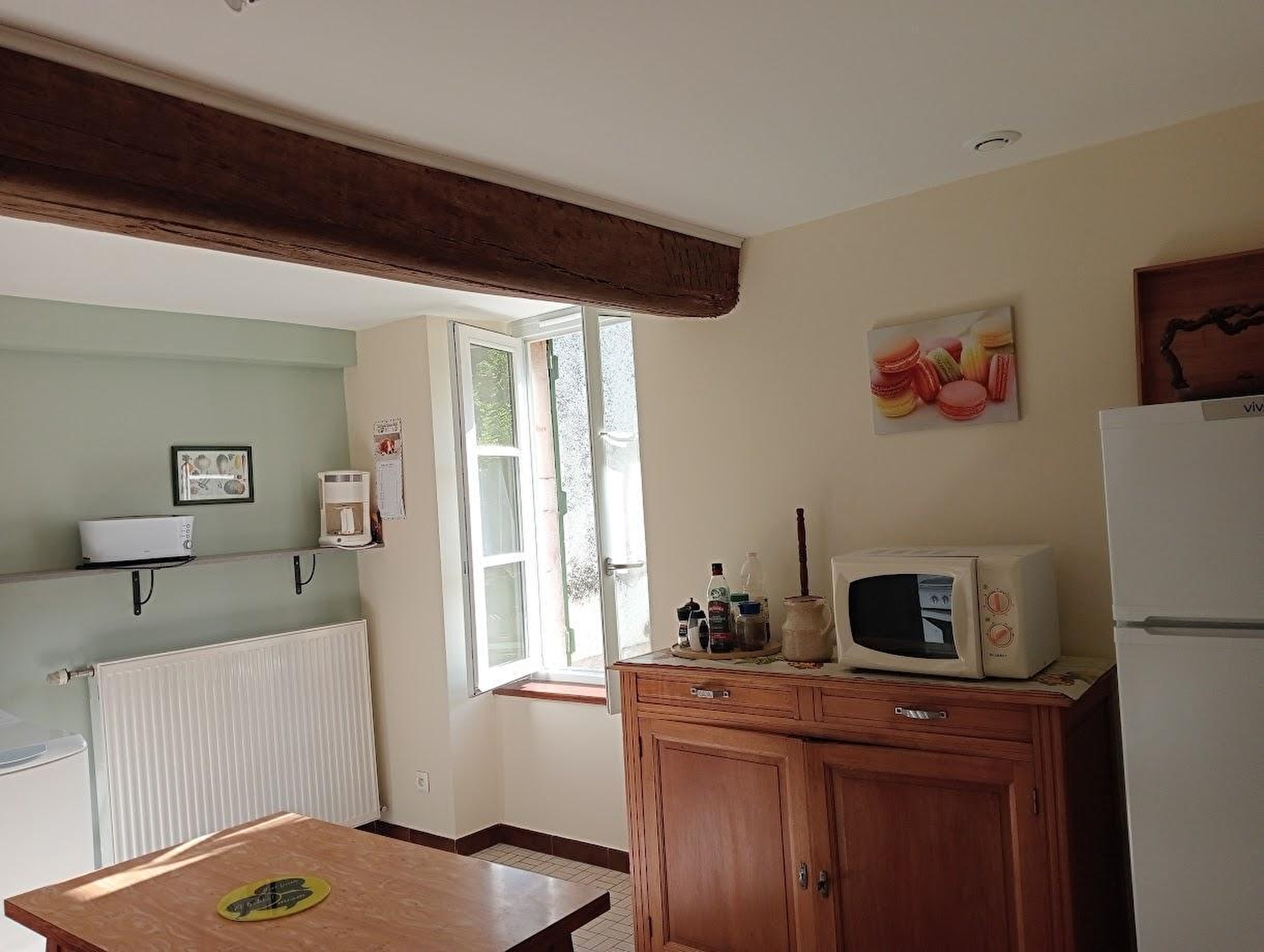 Composition : Maison de village mitoyenne voisinant la maison des propriétaires (totale indépendance). Wifi (fibre). Chauffage central gaz. Rdc : cuisine, séjour-salon, salle d'eau (douche). Demi étage (2 x 3 marches) : 2 chambres (lit 2 p. 140x190cm / 2 lits 1 p. 80x190cm), Wc indépendant. Jardin clos (150m²) + terrasse + parking privés. Grand garage en commun à 10m du gîte (2 places possible / local vélos). Supérette & petits commerces 4.5 km. Supermarché 9 km. Toutes commodités 11 km.