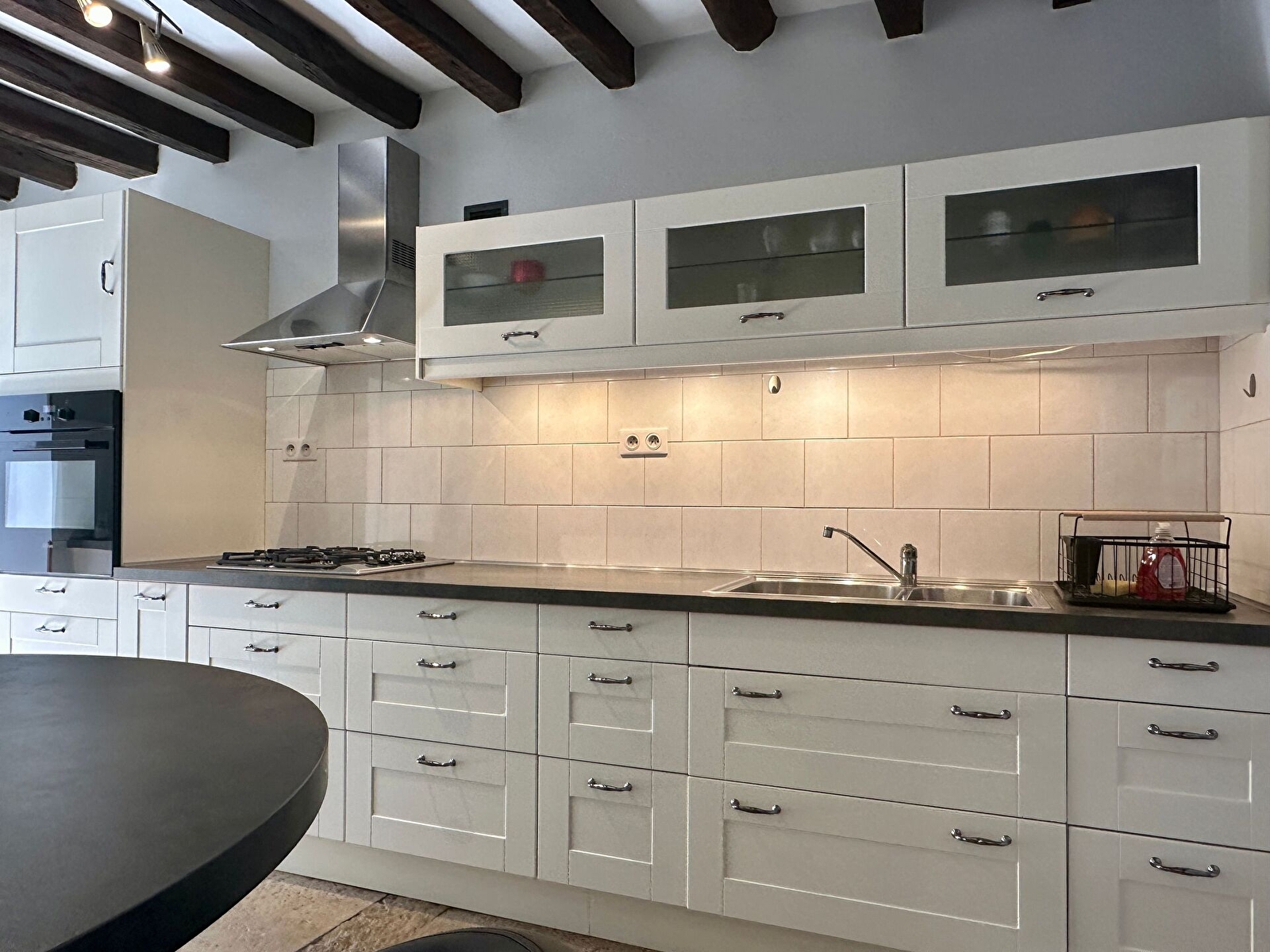 La cuisine est indépendante et entièrement équipée (réfrigérateur-congélateur, four, micro-ondes, plaques de cuisson, petit électroménager). Machine à café à grains. Dans la prolongement, un espace buanderie avec lave-linge et lave-vaisselle est accessible.