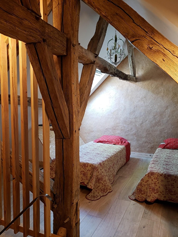 Étage : 1 chambre 2 lits 90x200 (jumelables) , lavabo. Équipement bébé sur demande : baignoire, chaise haute et pot.