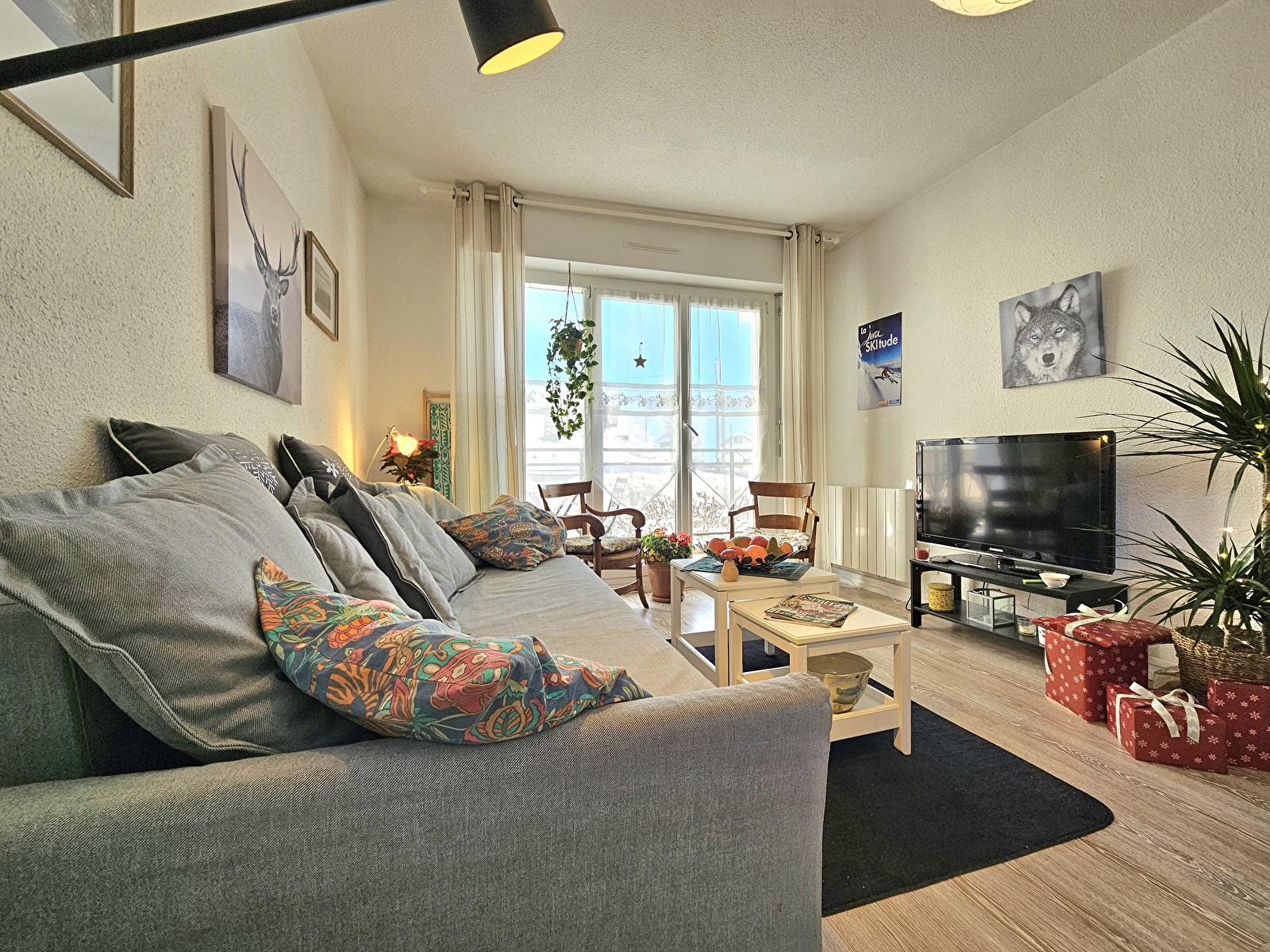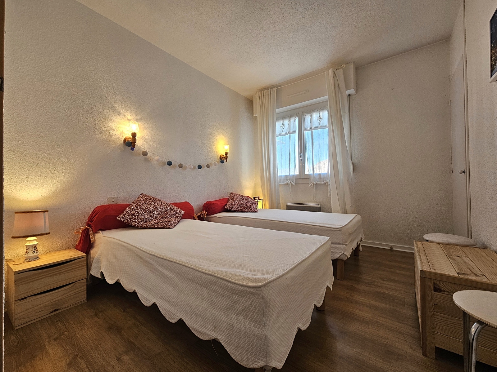 Situé dans la résidence "La Fontaine", l’appartement de 60m², au rez-de-chaussée est composé d’une pièce principale avec coin repas et canapé convertible, cuisine indépendante. Une première chambre avec un lit double de 140cm et une seconde avec 2 lits simples de 90cm. Salle de bain et WC indépendant.