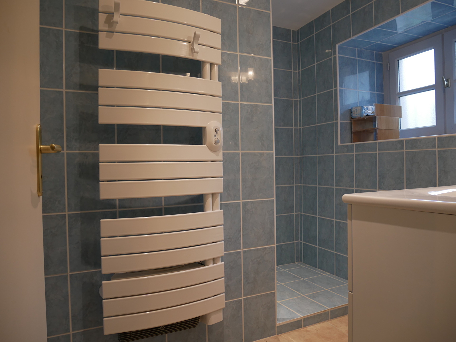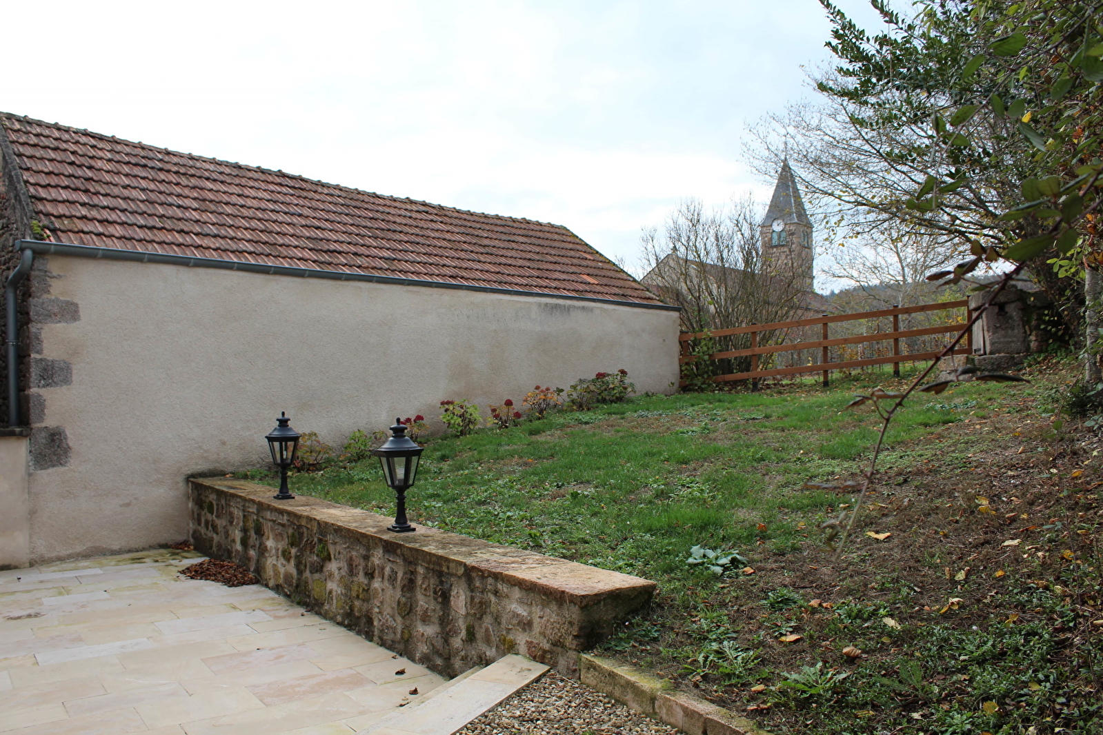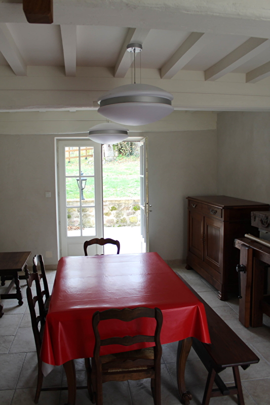 Au rez-de-chaussée : grand séjour avec terrasse sur jardin. Cuisine aménagée. salle de bains avec douche.