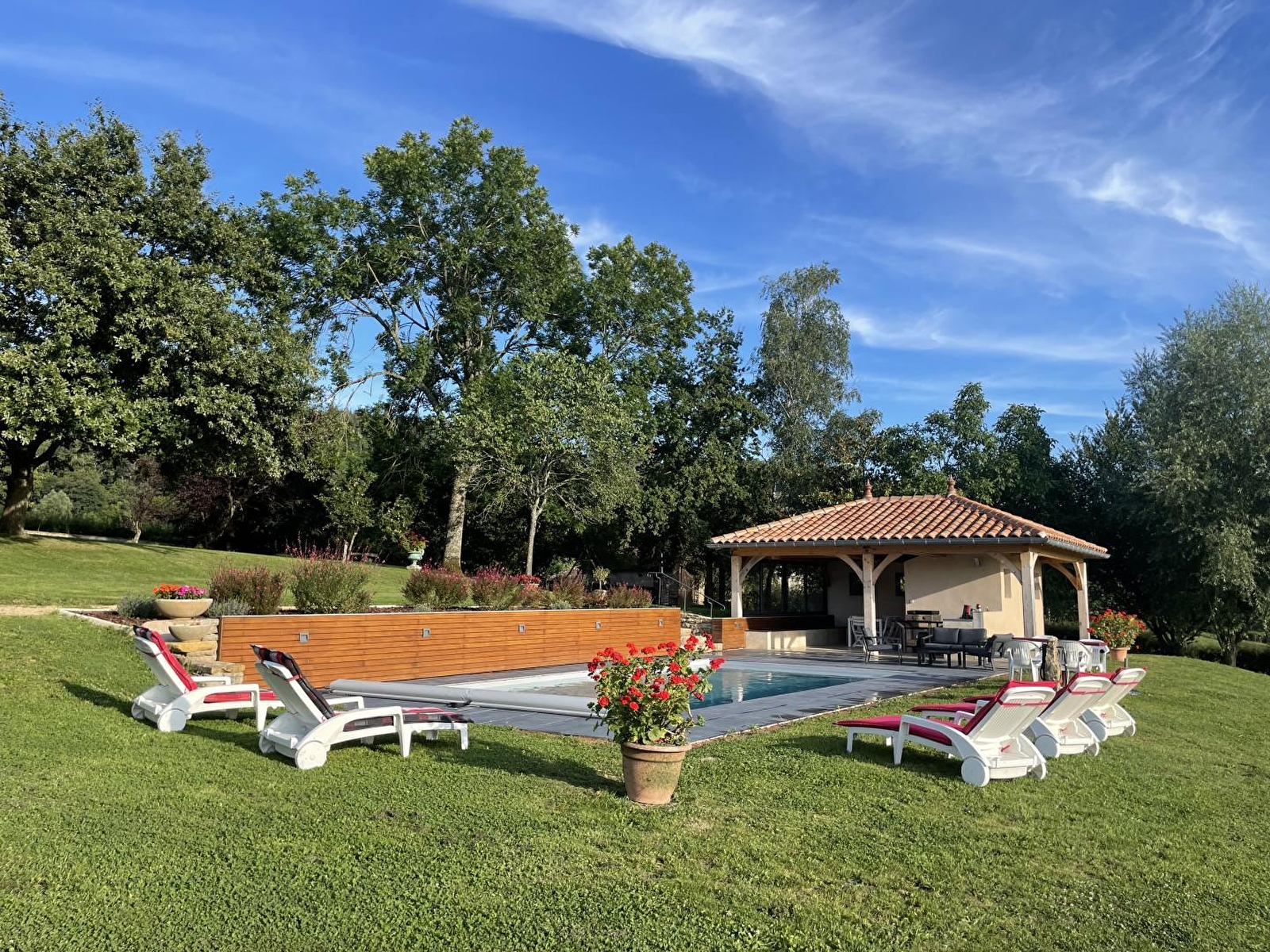 Bernard vous accueille au sein d'une élégante authentique demeure de caractère de 1690 chargée d'histoire, propriété familiale depuis le XVIIIe, ancienne ferme viticole liée jadis à l'abbaye de Cluny, sise au calme en pleine campagne vallonnée au sein d'un paisible petit hameau adossé à flanc de coteau exposé, au creux d'un bucolique cirque de bocage blotti sous les collines boisées dominant Cluny. Magnifique écrin préservé de nature & verdure, entre prairies, vignobles & forêts, littéral havre de paix & repos lové au cœur d'un site classé "Zone Natura 2000". Belle vue dégagée sur la campagne environnante. Superbes panorama & paysages. Exceptionnel domaine privé de 30 ha, en très large partie "naturel" (disposant entre autres d'un étang de pêche avec carpes & gardons et d'une grande forêt parsemée de sentiers de randonnées), comprenant un agréable parc clos de 5000m² aux arbres centenaires soigneusement aménagé (accueillant une ânesse, un poney & un arboretum riche de plus d'une dizaine de variétés) doté d'une belle piscine chauffée (9x4.5m) et de nombreux espaces ludiques de repos & détente. Absolus calme & tranquillité. Spacieux gîte de bon confort. Beaux volumes. Chaleureux cachet campagnard alliant l'esprit d'une "maison de famille" et l'ambiance dépaysante d'une ancienne demeure (plafonds à la française, linteaux de fenêtre en pierres d'origine…). Large terrasse (en gravier) exposée & ombragée sous les arbres & agréable jardin privatifs.