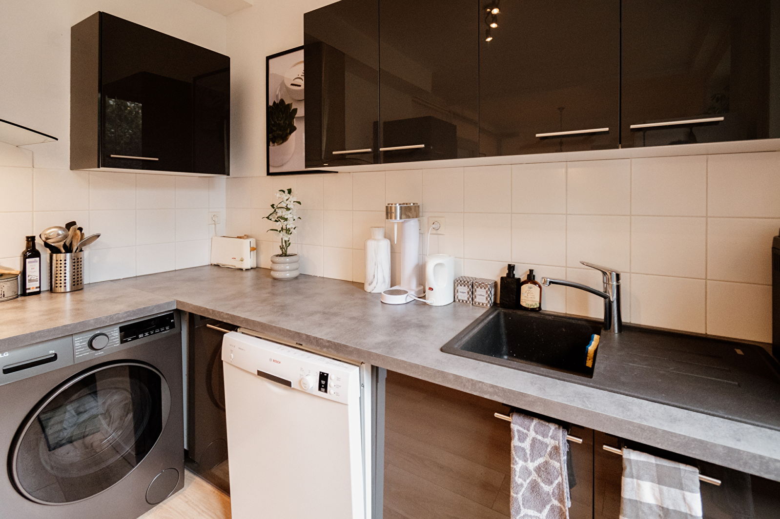 Il offre 1 chambre confortable, 1 salle de bain moderne et deux grands espaces de séjour lumineux pour se détendre ou recevoir. Profitez d’un vidéoprojecteur pour vos soirées cinéma et d’un balcon privé avec vue sur la ville. Chaque détail a été pensé pour allier confort, style et ambiance chaleureuse, faisant de cet appartement le lieu parfait pour une escapade urbaine ou un séjour professionnel.