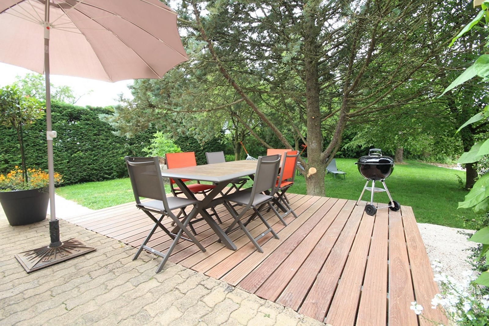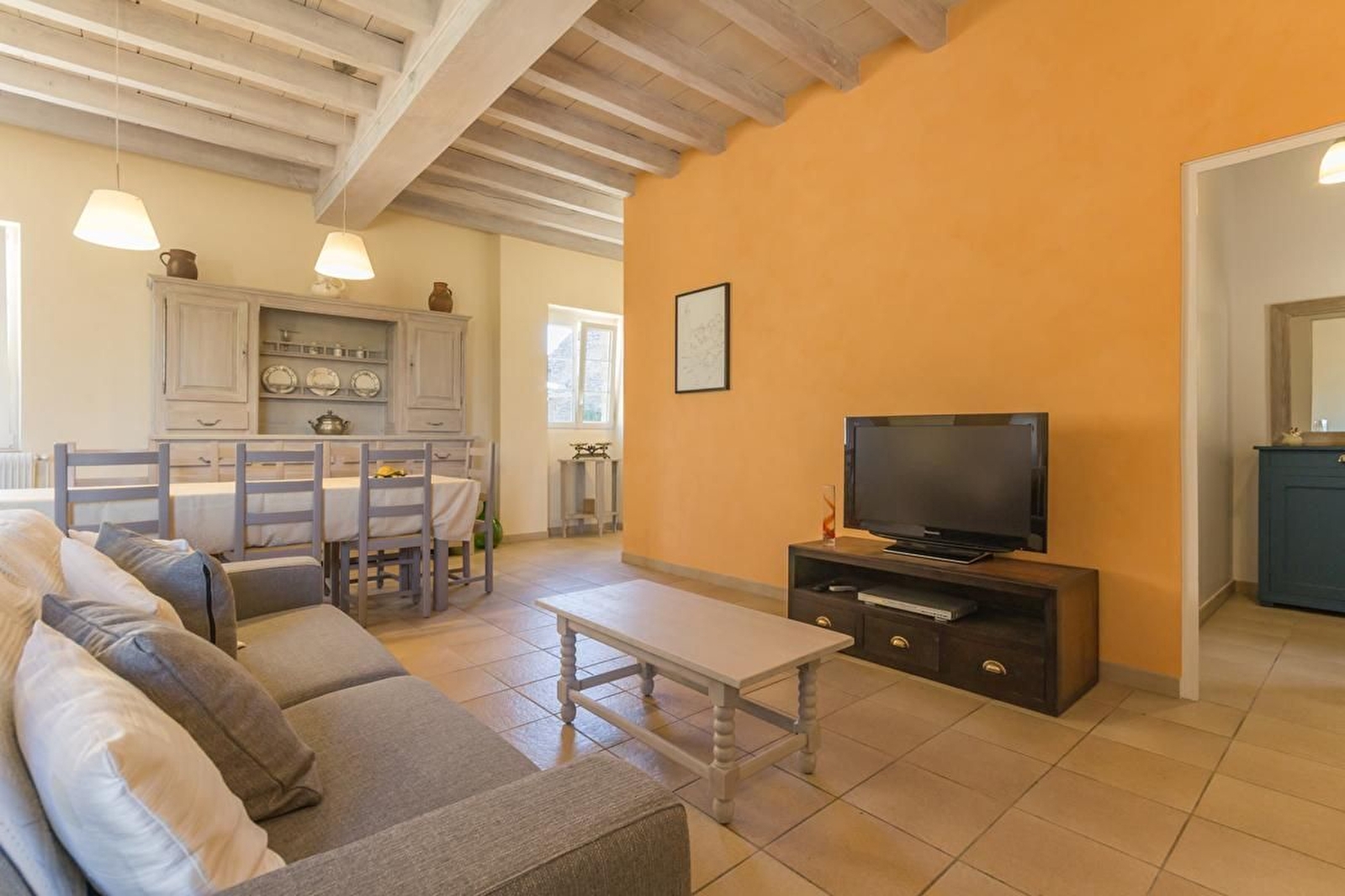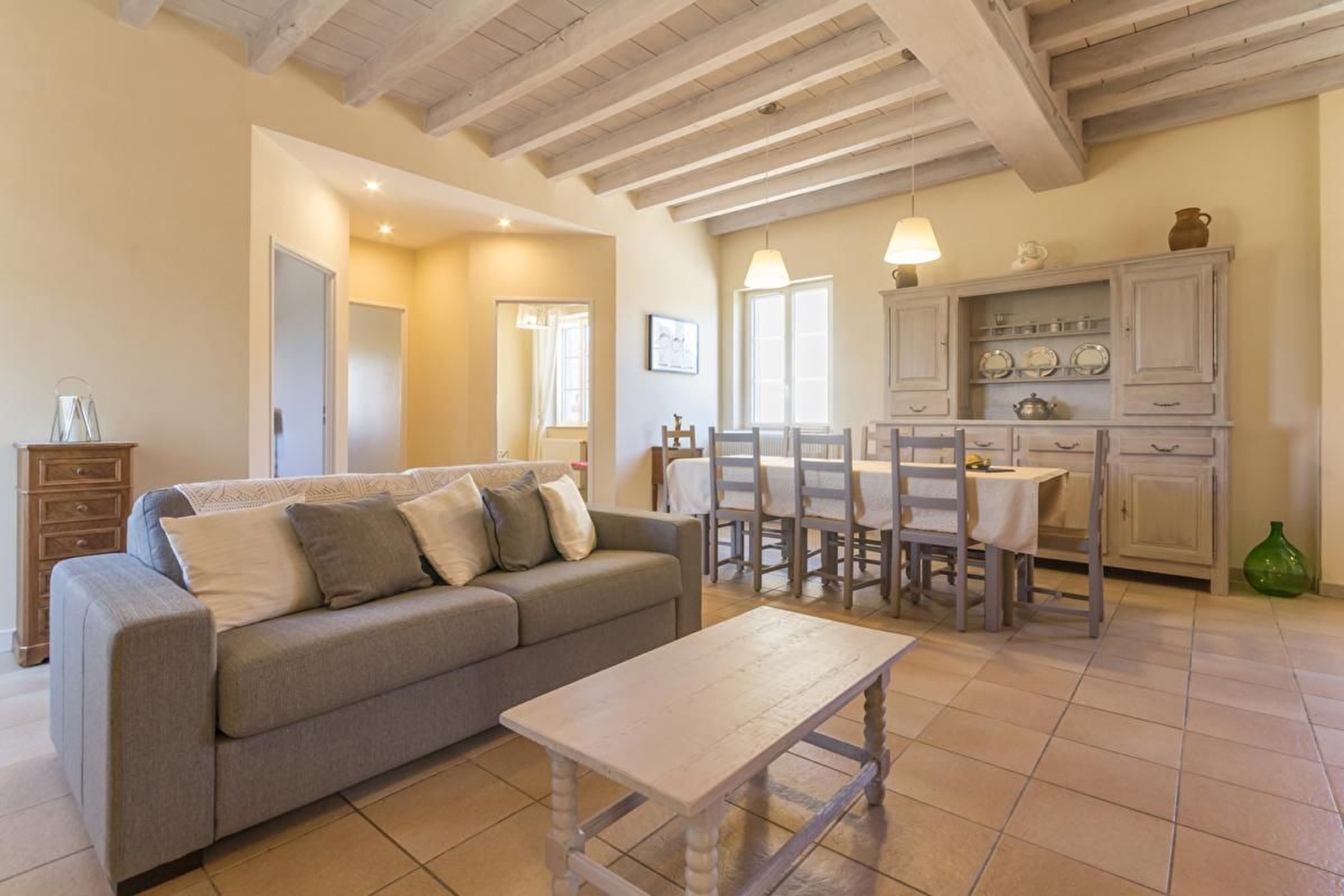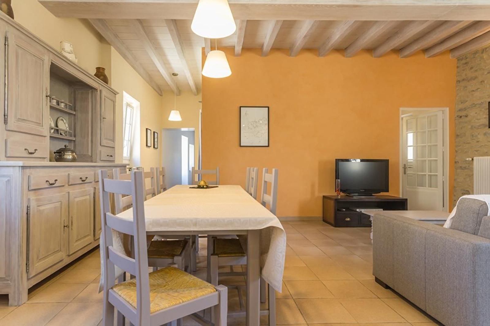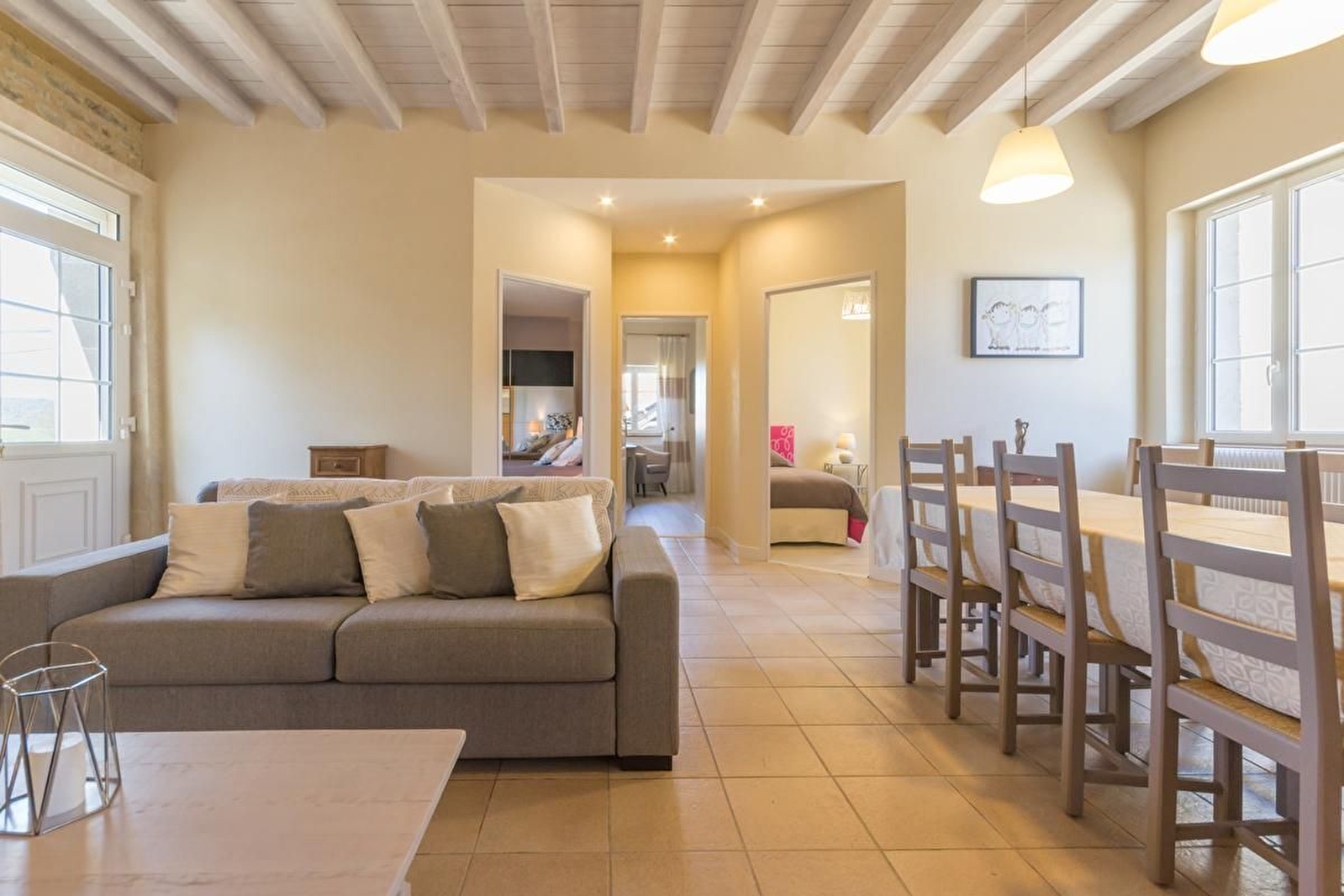 Salle à manger et salon avec pierres apparentes et poutres (possibilité 2 couchages supplémentaires gratuits). Cuisine intégrée avec ilot central. 3 chambres avec parquet : 2 avec un lit 160 et 1 avec un lit 90. Salle d'eau avec douche à l'italienne et double vasque. WC suspendu séparé. Terrasse et jardin privatif de 250 m². Parking. L'établissement n'est pas adapté pour les séjours professionnels.