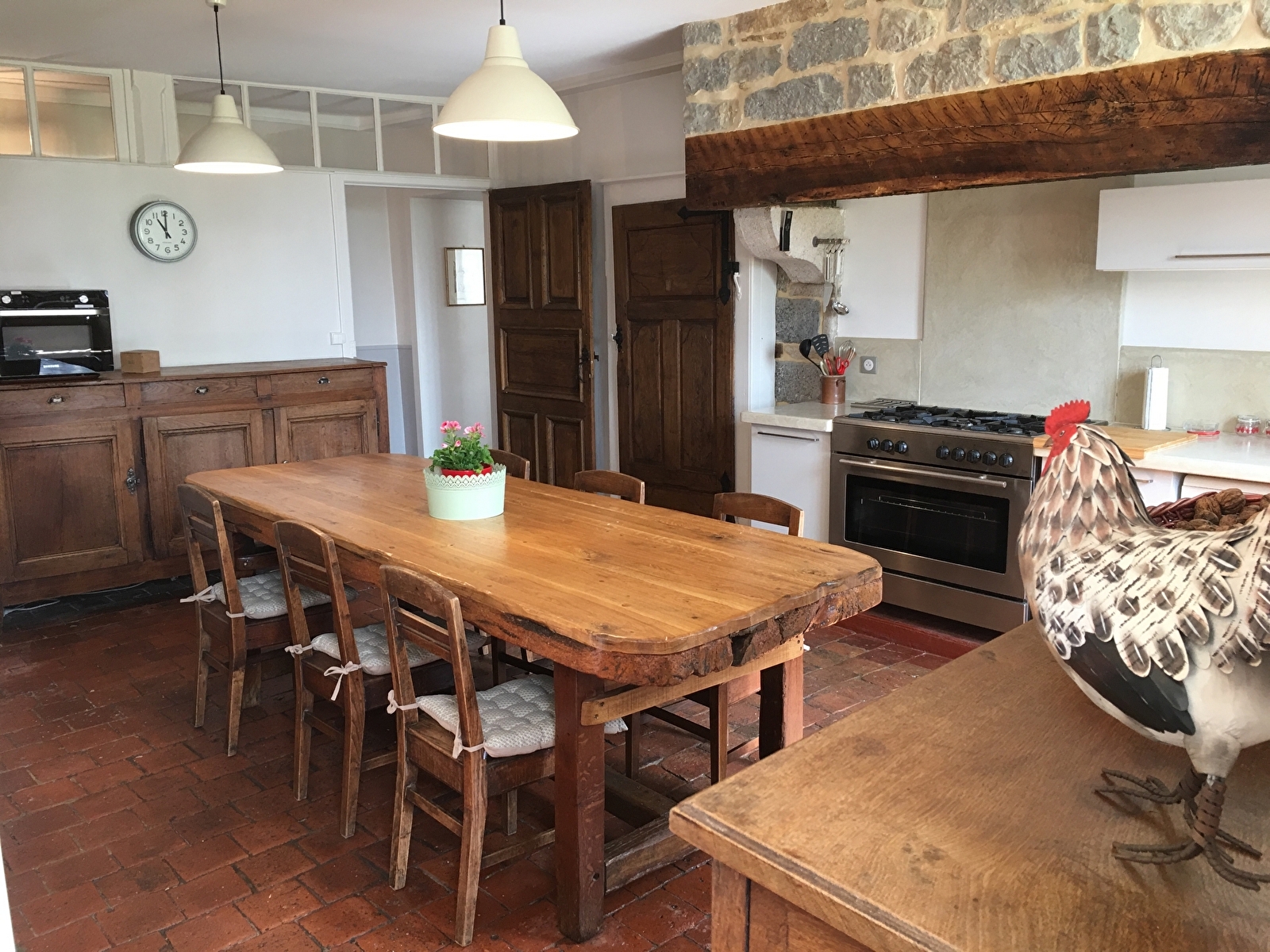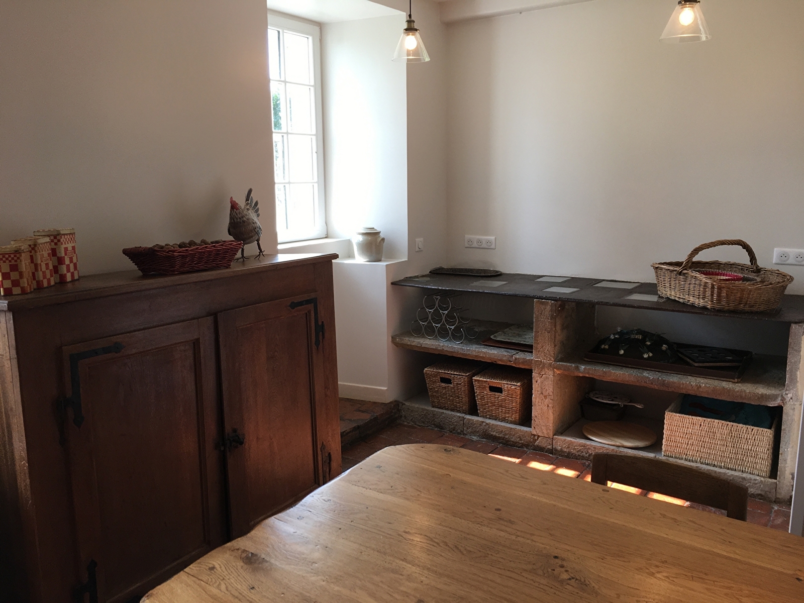 C'est une maison de caractère avec tomettes anciennes au sol, boiseries et équipements anciens : évier de pierre, poêle de faïence, "potager" au sein de la cuisine... Elle à été entièrement modernisée pour vous accueillir dans de bonnes conditions de confort.