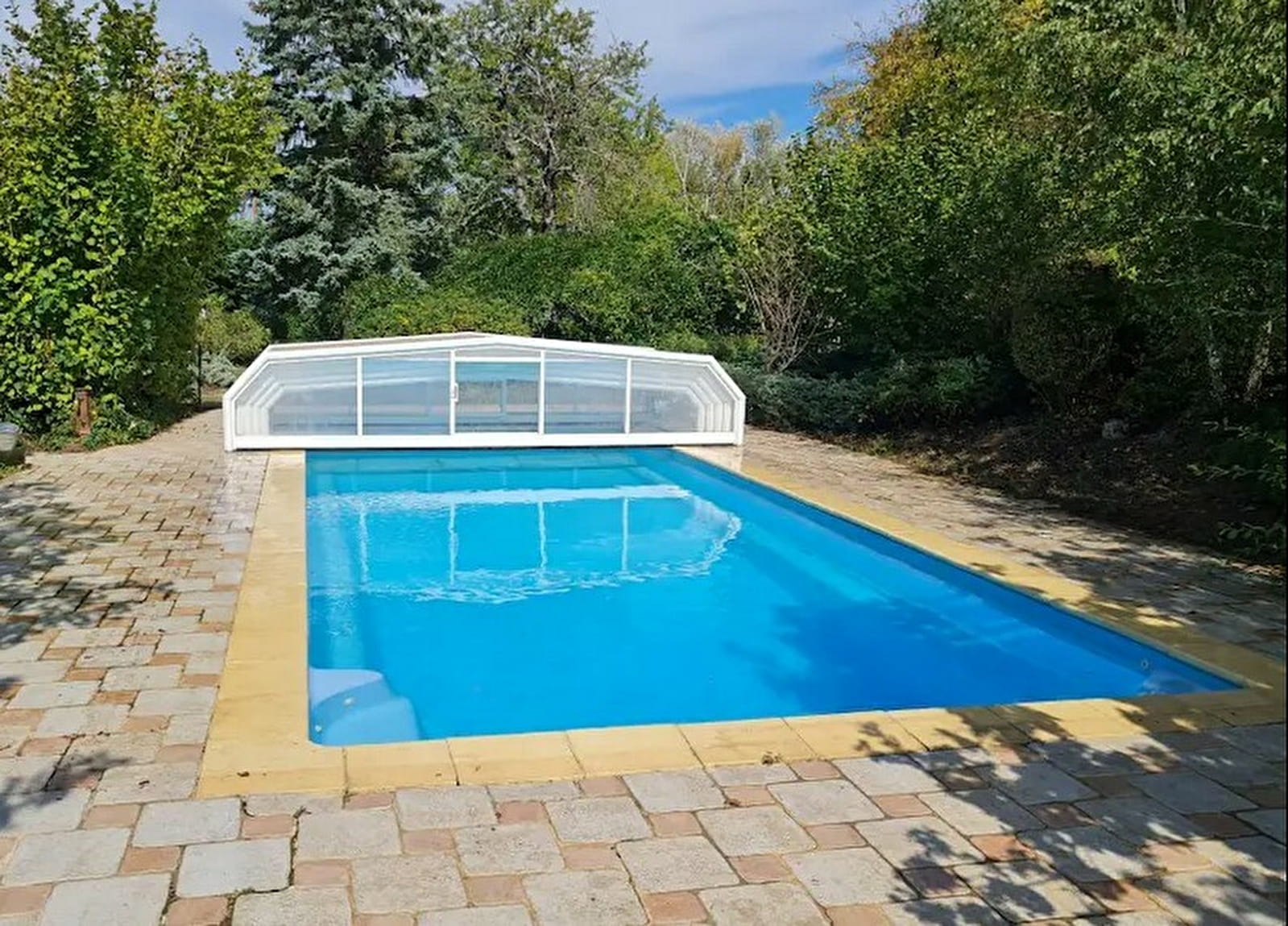 Possibilité d’utilisation de la piscine de mai à octobre : le toit en verre fait effet de serre pour la chauffer naturellement.