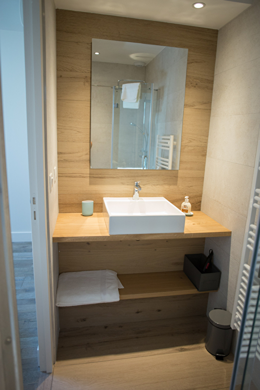 – Chambre 3 : deux lits simples avec une salle de bain douche